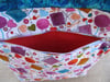 Knitting/Crochet bags should be made with a drawstring closure, a snap closure or left open at the top. Zipper closures for knitting bags are not ideal as they would catch and snag the yarn as you you knit. Take it from me, a knitter, I only make bags for knitting without a zipper closure. Having the zipper pocket on the back of the bag doesn't interfere with your yarn at all.