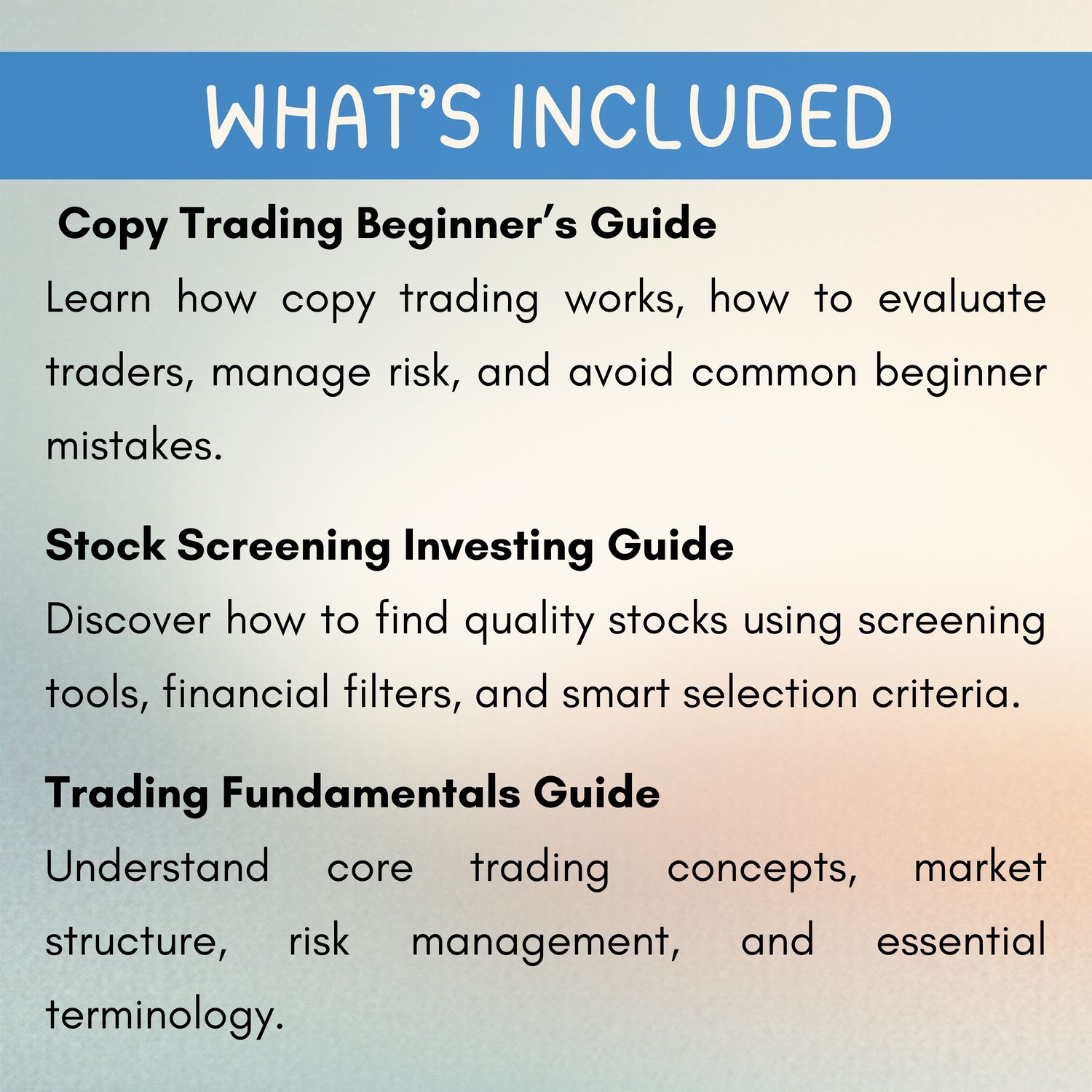 Beginner Trading Guides Bundle – Stock, Copy Trade, Fundamentals (Digital Download)