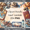 Watercolor Travel Essentials Clipart Bundle – 20+ High-Quality PNGs