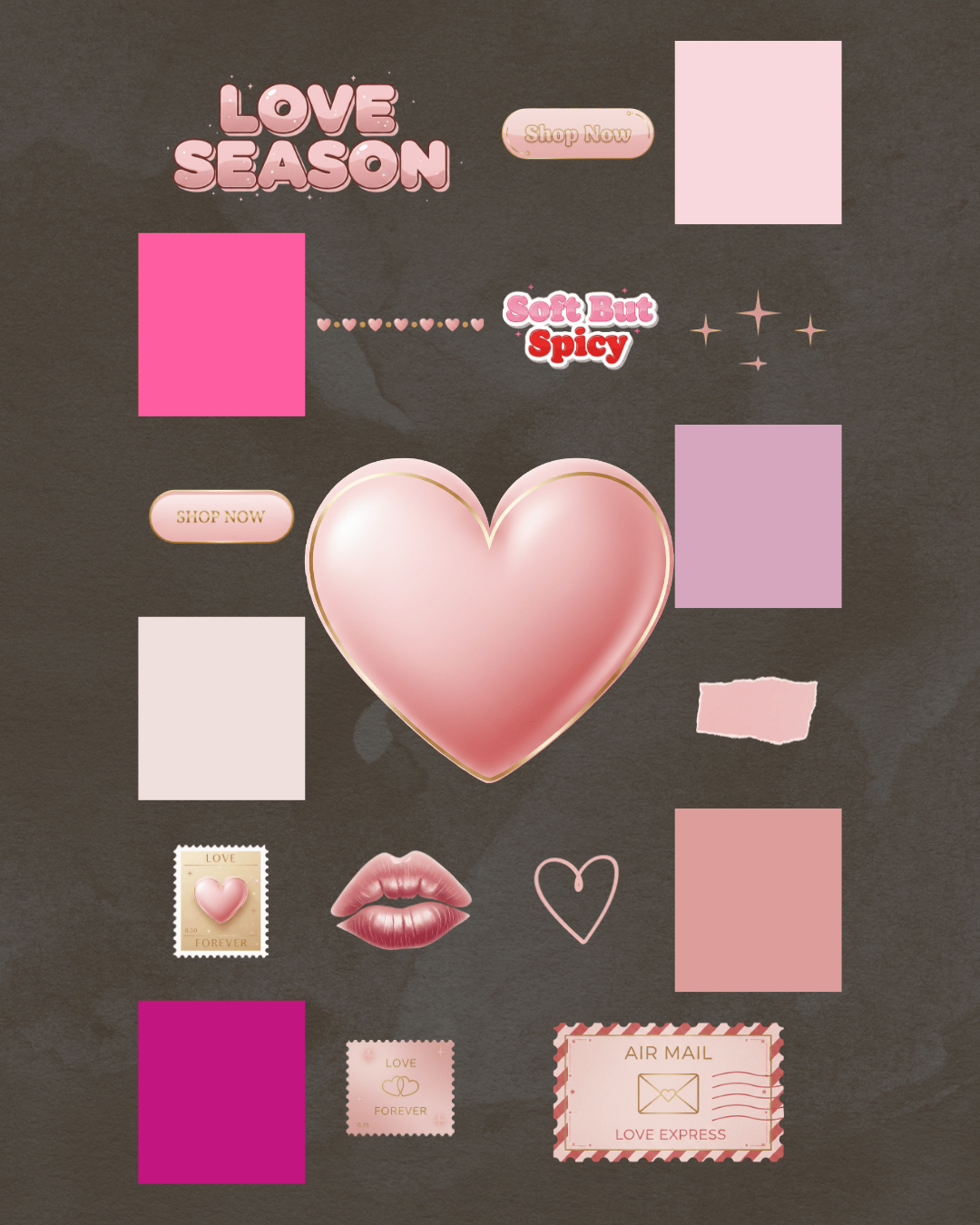 This collection is designed for creators who love layering details into their designs without overthinking it. Use the elements to elevate your Canva projects, websites, flyers, social posts, digital invites, and Valentine or Galentine’s Day content.