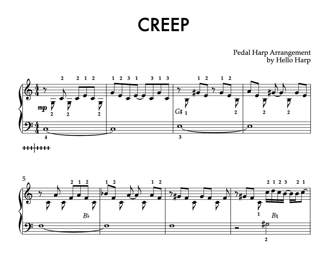 Creep - Radiohead (Pedal Harp Sheet Music)