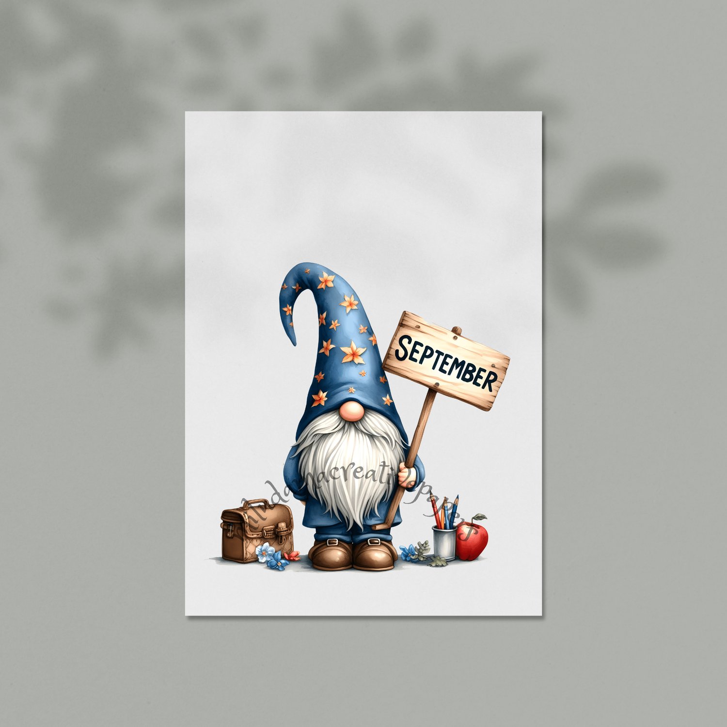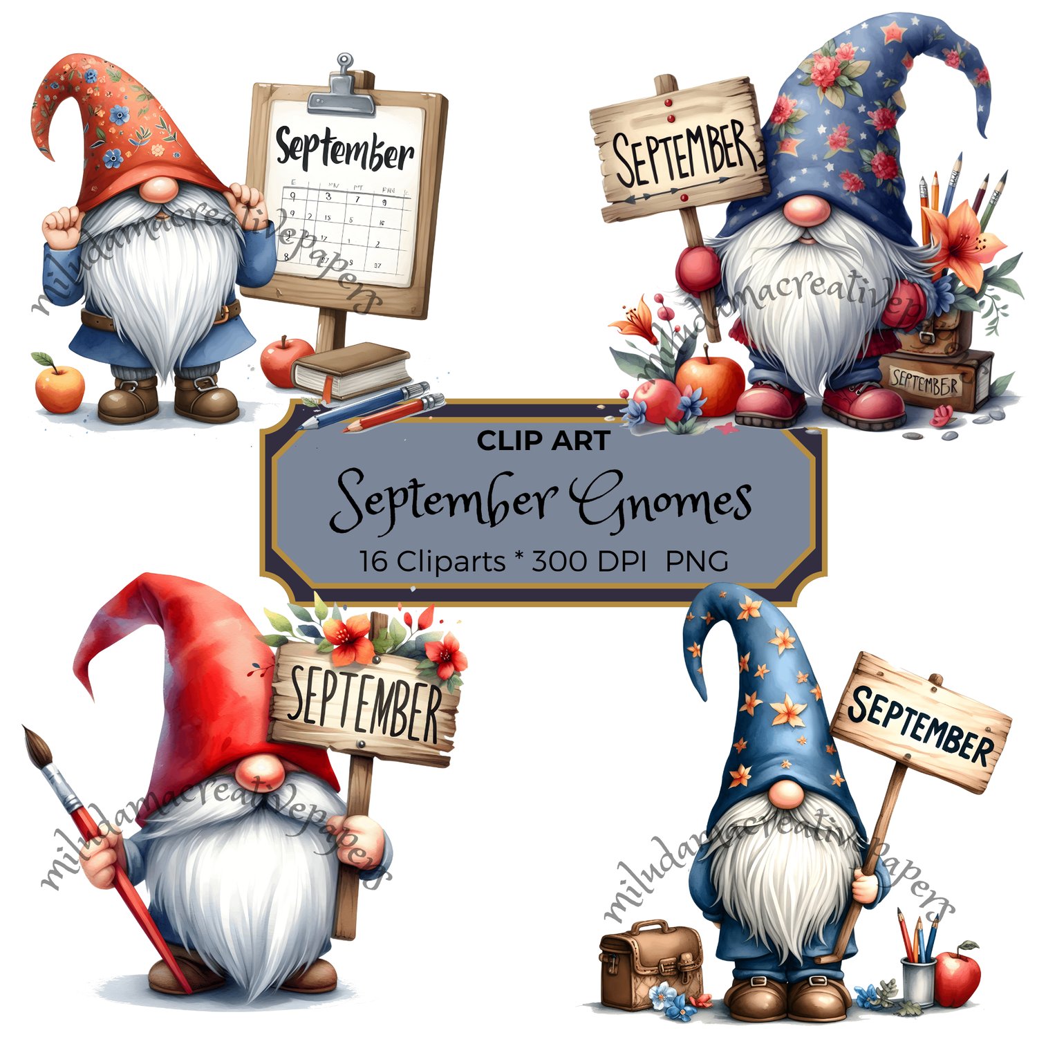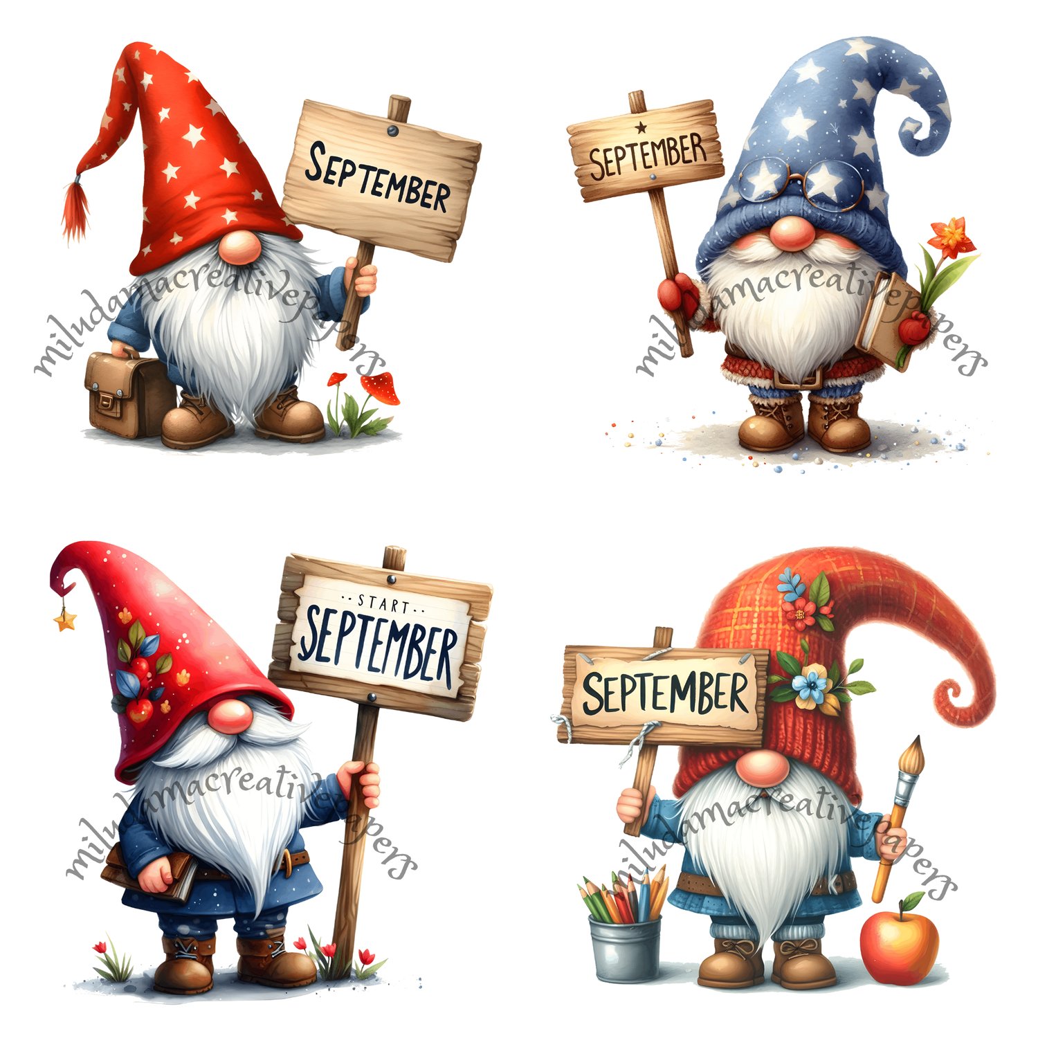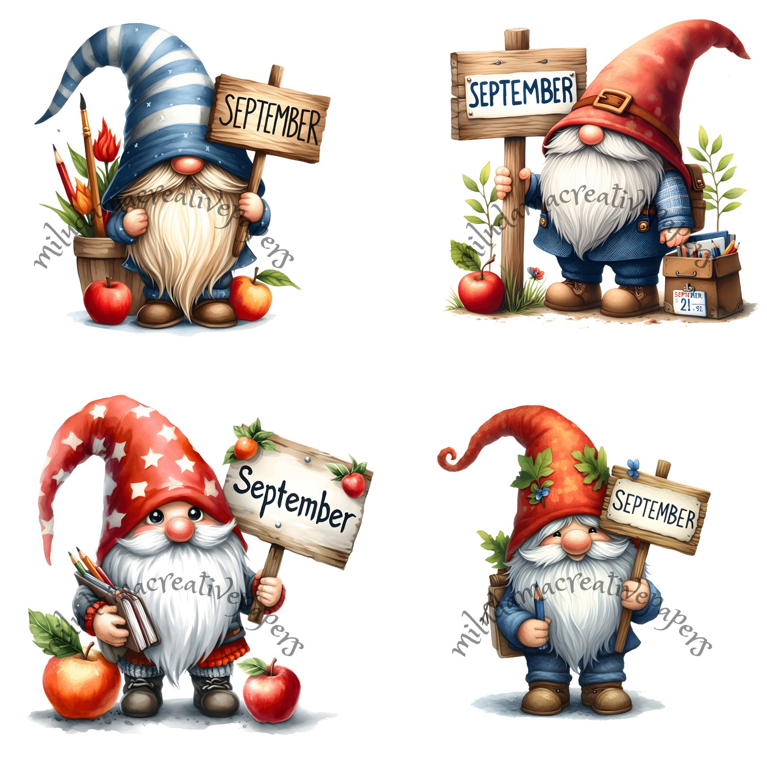 Back to School September Gnomes Clipart – 16 PNGs | September Digital Download