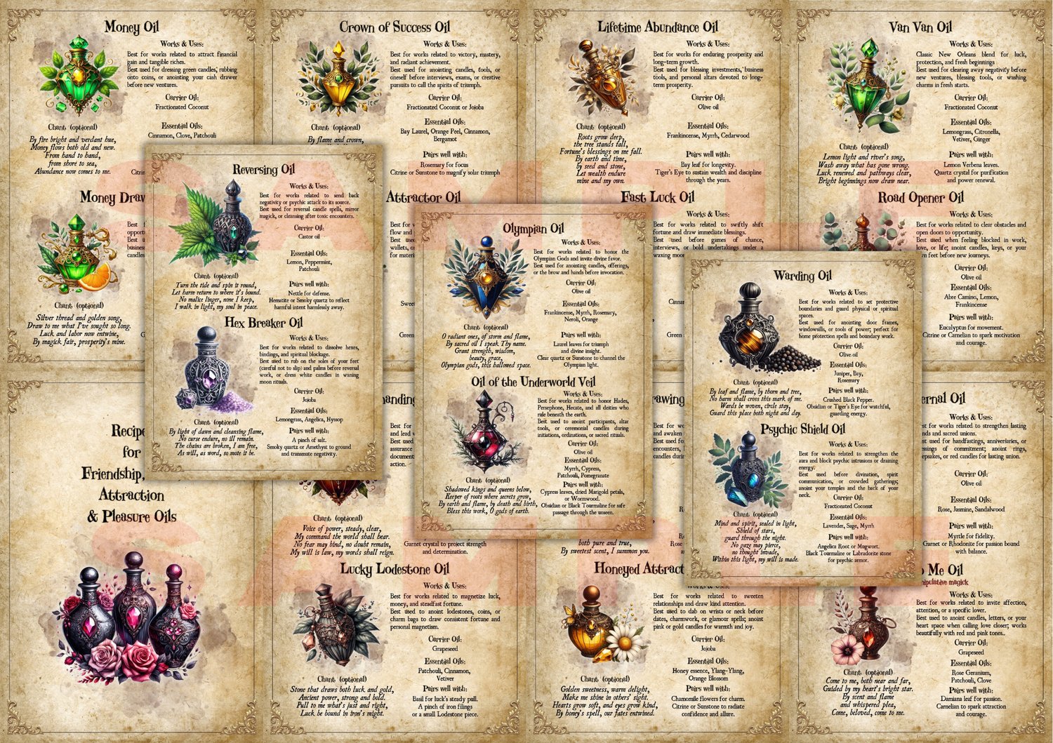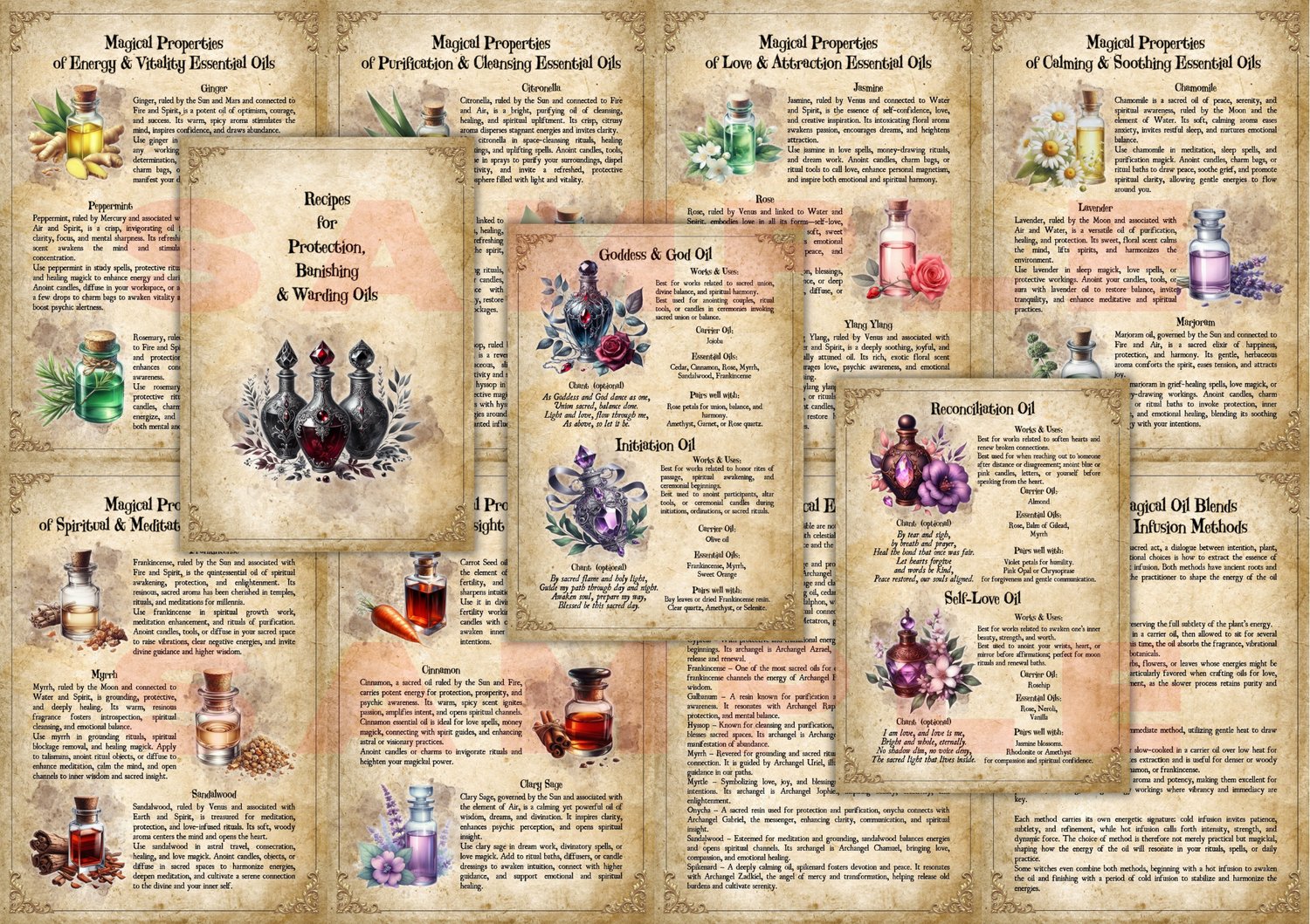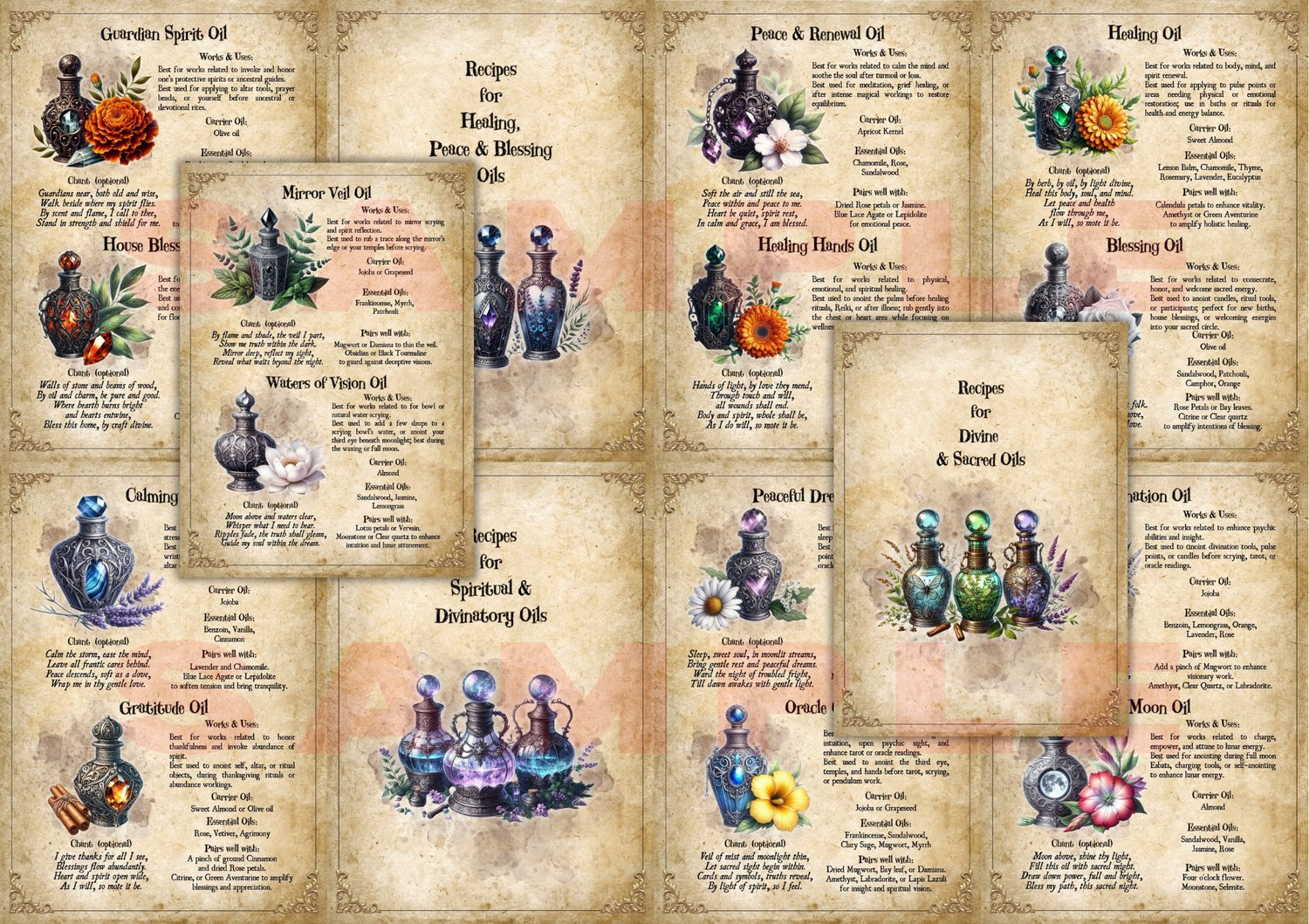 Unveil the sacred secrets of scent with our Printable Magick Oils Grimoire, adorned with beautiful, enchanting artwork.