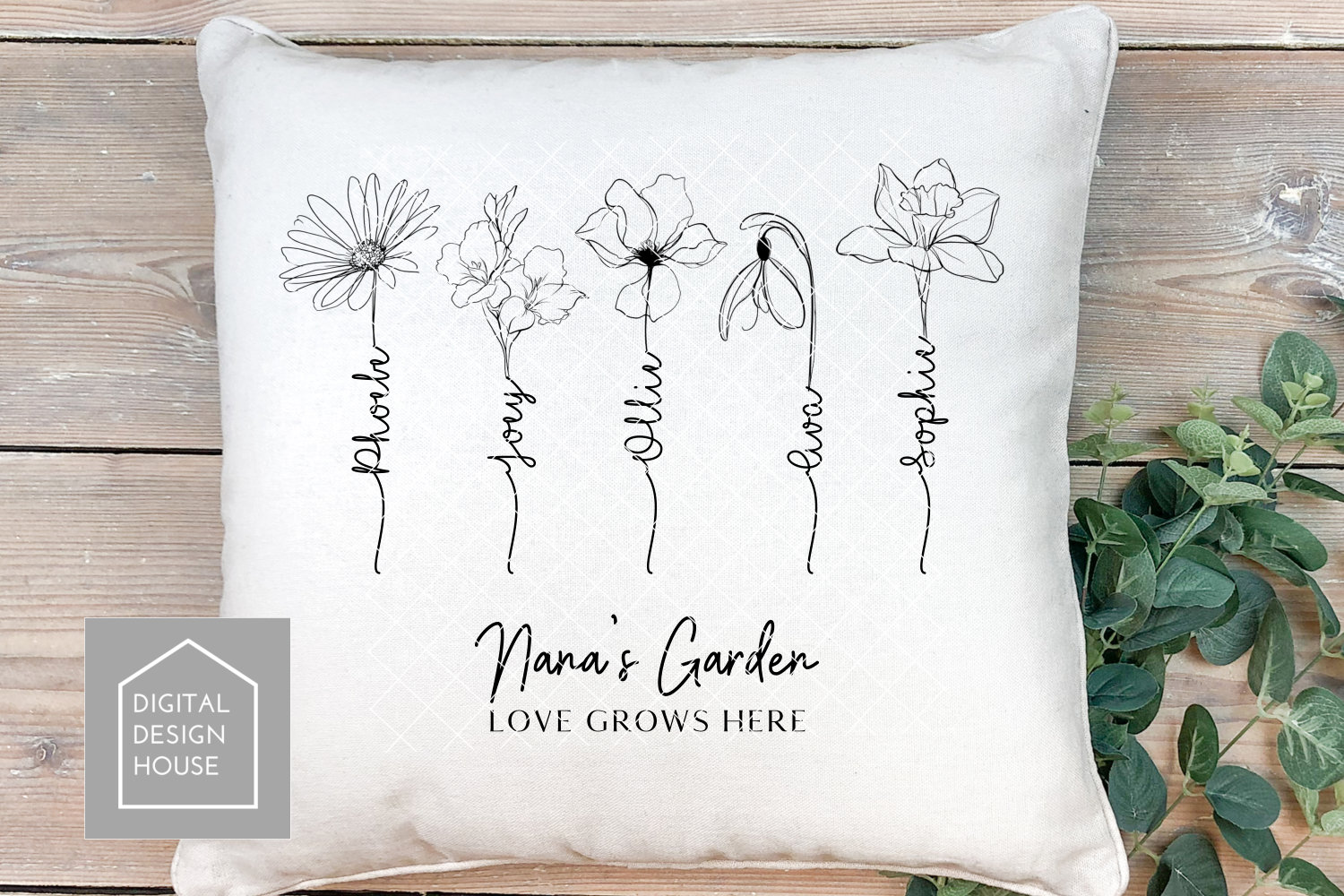 - Add names or text along the stem no font included (the font used in the mock ups is I love Glitter)
