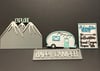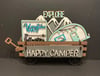 Happy Camper Set for the Interchangable Wagon is laser cut and hand painted from Baltic birch. The set pieces include Explore the mountains, cute retro teal and white camper and an adventure awaits sign with all the places you will visit and your Happy Camper sign with 2 hooks, The pieces range in size from 4-8"