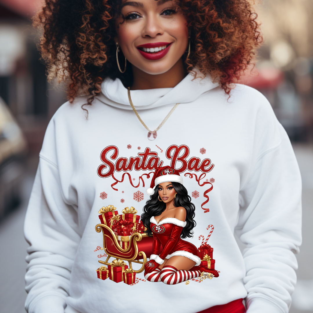 Bring the heat this holiday with the Santa Bae Christmas PNG — a bold, glam festive design featuring a stunning Santa beauty surrounded by red and gold gifts, candy canes, and a luxury sleigh. Perfect for sublimation, T-shirts, mugs, and tumblers, this design is made for the girls who love Christmas, sparkle, and a little sass under the tree.