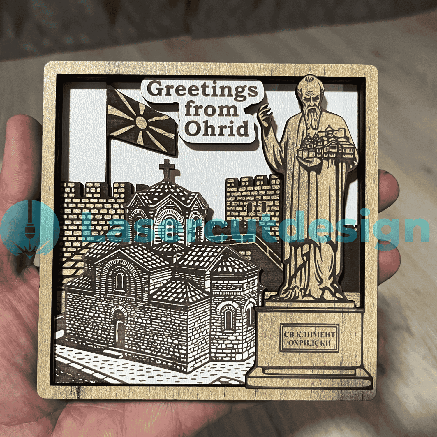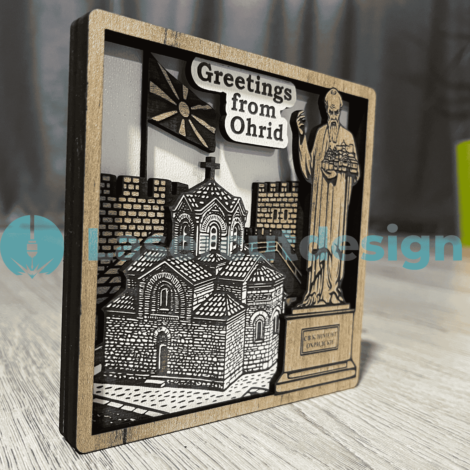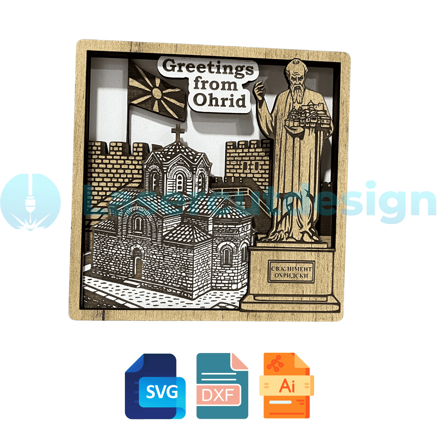 Greetings from Ohrid 3D Wooden Souvenir – Macedonia Landmark SVG DXF AI Laser Cut File Layered