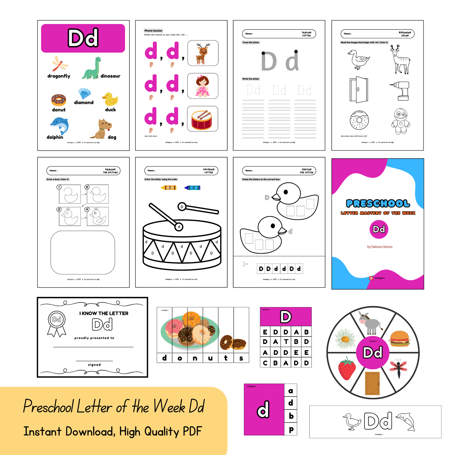 Preschool Letter of the Week Dd | Tracing, Phonics, Reading & Writing Worksheets | 22 Pages Printable PDF