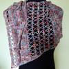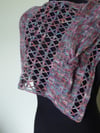 Love Letter is a fun asymmetrical shawl using back and front loop only stitches to create a lovely background for panels of lace formed with simple cross stitches. The name was inspired by these stitches which resemble the lines of an old-fashioned hand-written love letter signed off with x’s representing kisses.