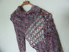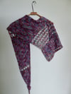 The sample was made with fingering yarn and a 3.25 mm hook, however, the shawl can be made with any yarn and an appropriately sized hook. It is designed for those gorgeous, one-of-a-kind variegated skeins that fall into your stash but you have no idea what to do with.