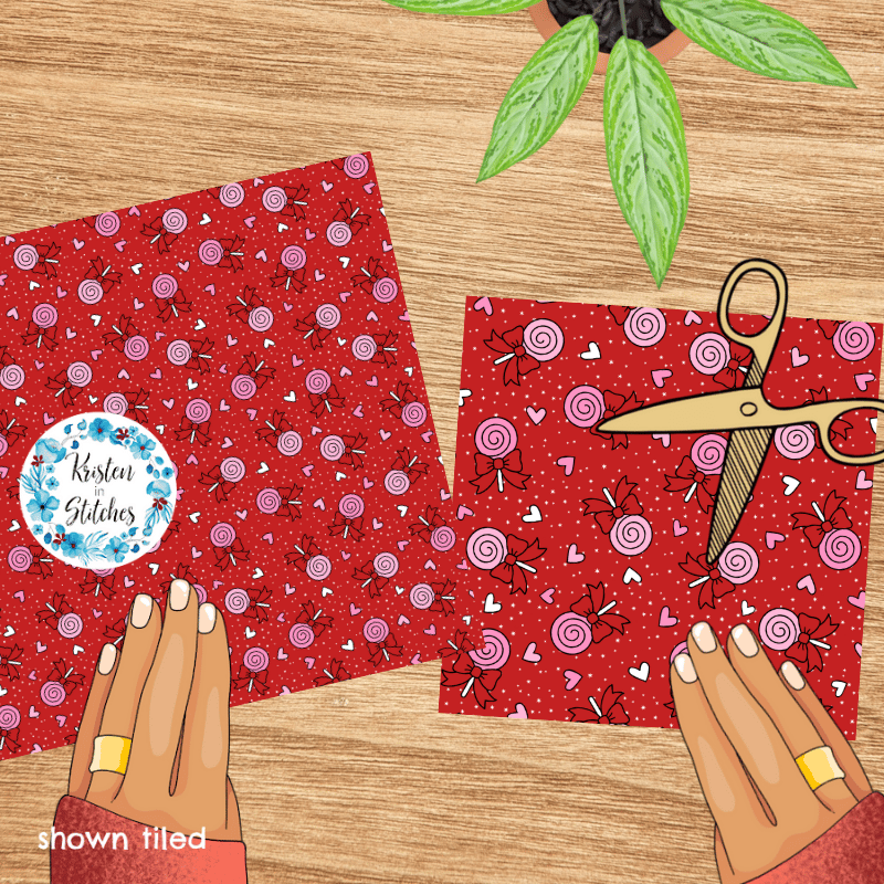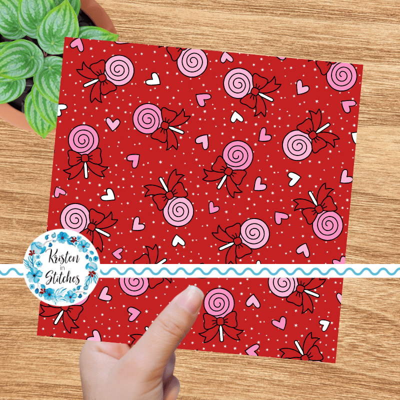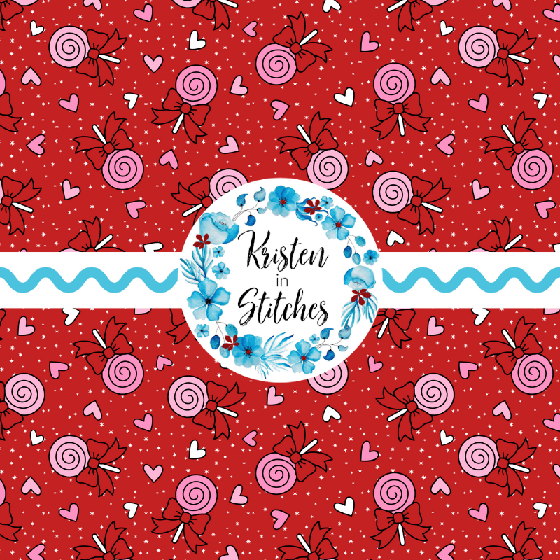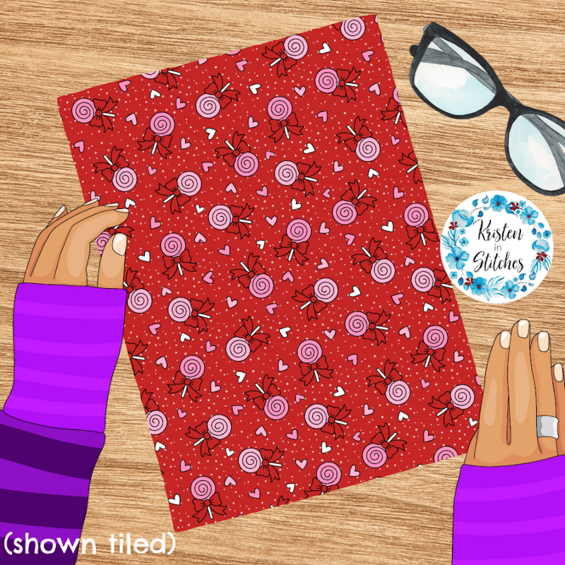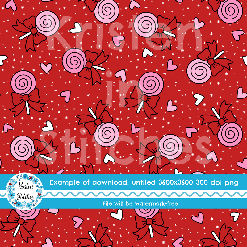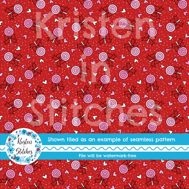 Valentine Lollipops Seamless Pattern, Candy Bows and Hearts
