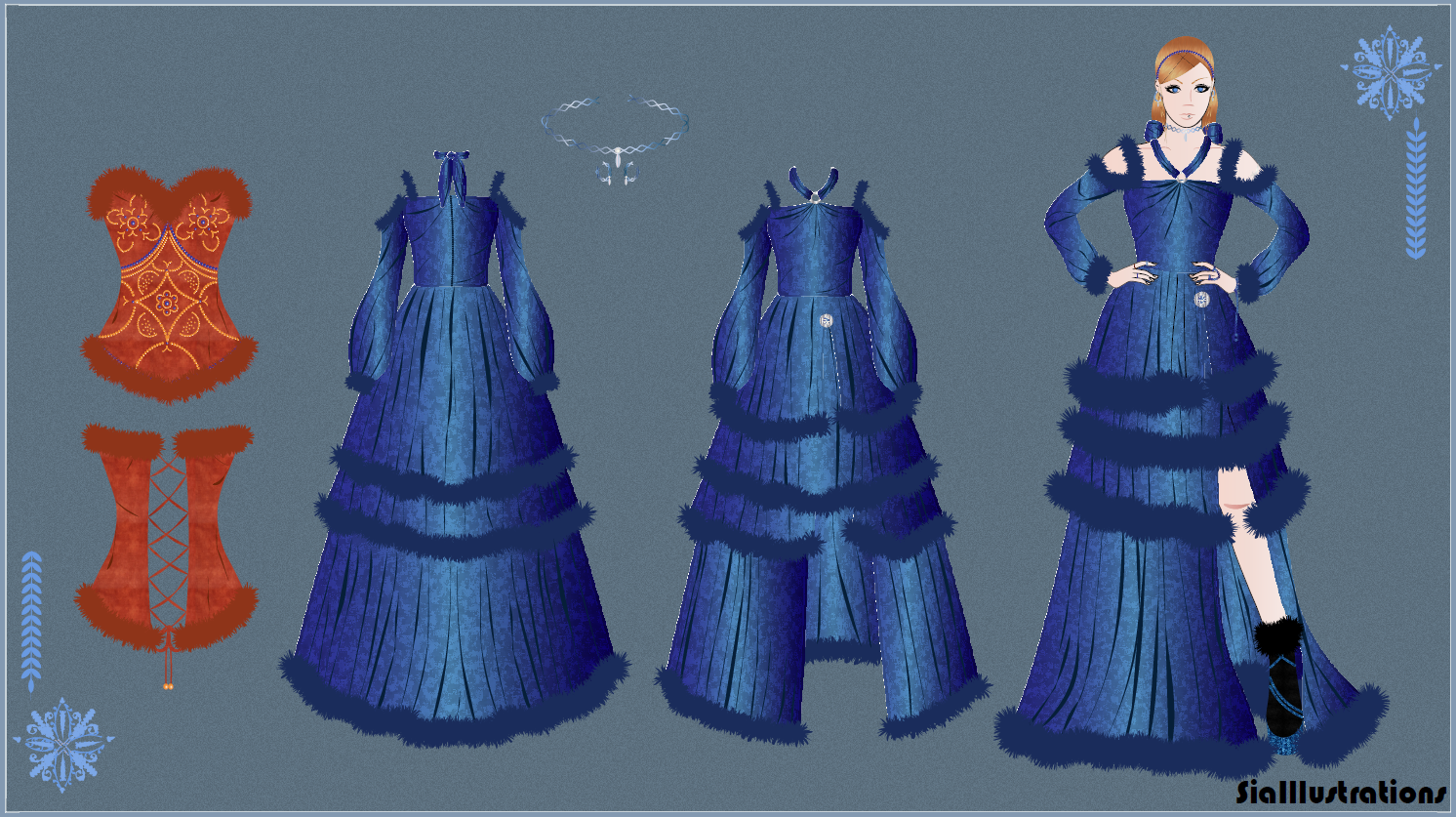 Bringing in another "Lavish Faux Fur Silk Slit Gown Fashion Illustration" to the series of beautiful and exquisite gown collections. Indulge in the blue silk slit gown illustration with faux fur linings, tie neckline and long bishop style sleeves together with orange beaded corset to complete your fashion look of the day. The detailed design of the gown fashion illustration, front and back view of each garment is available in PNG and PDF format.