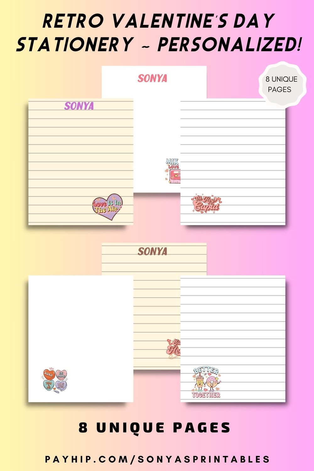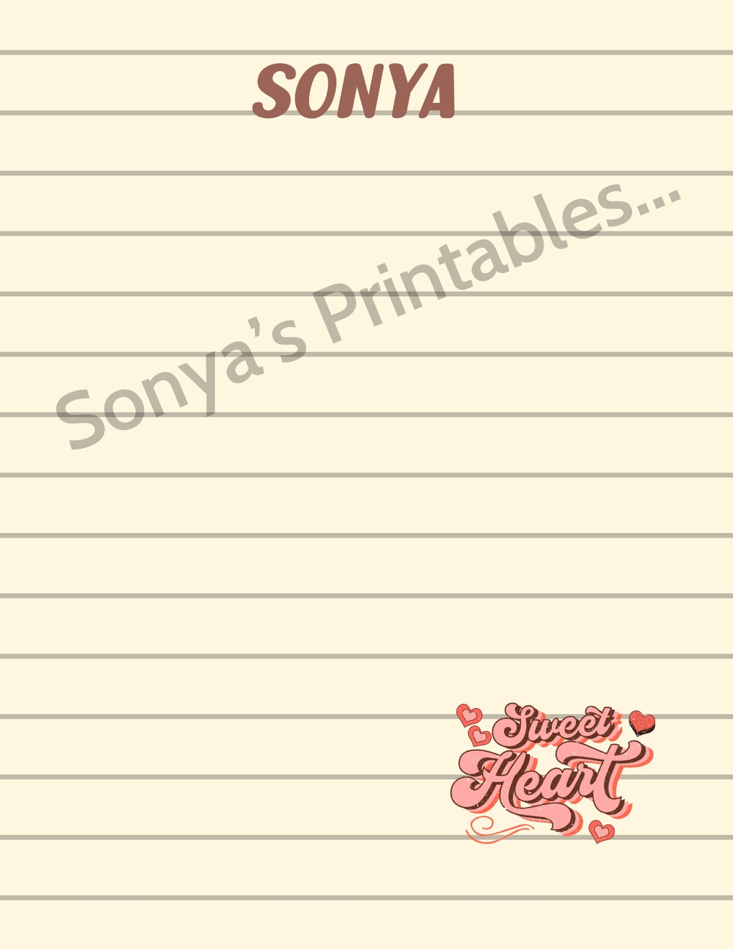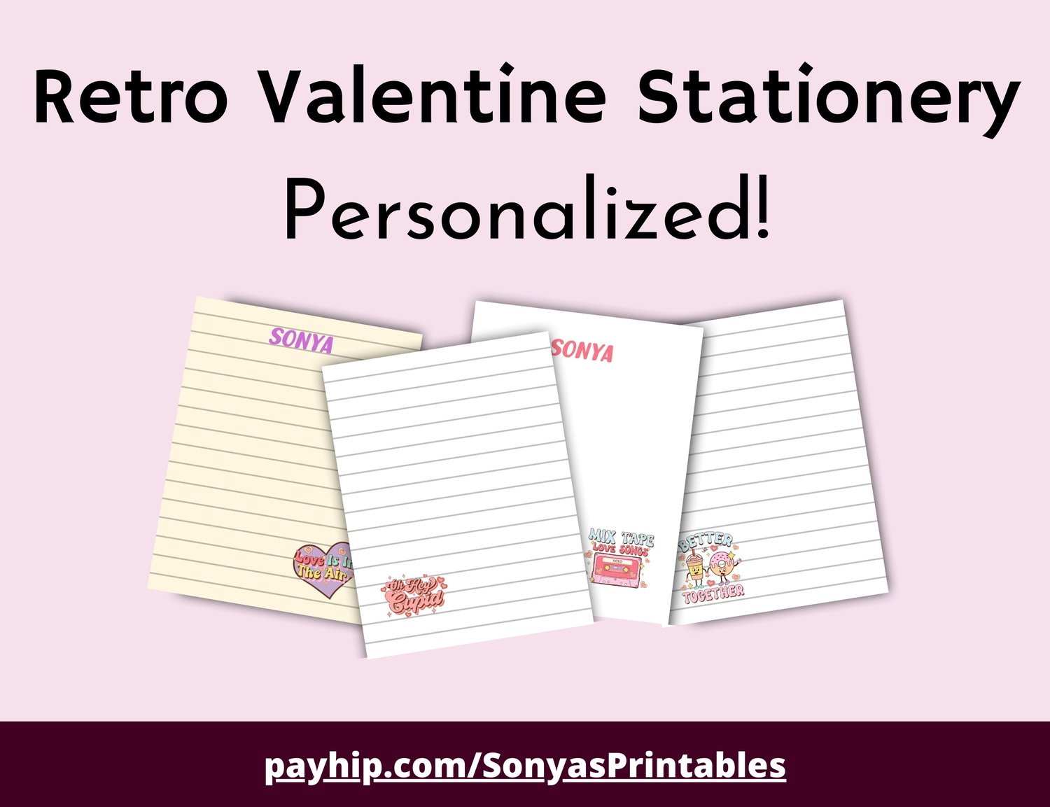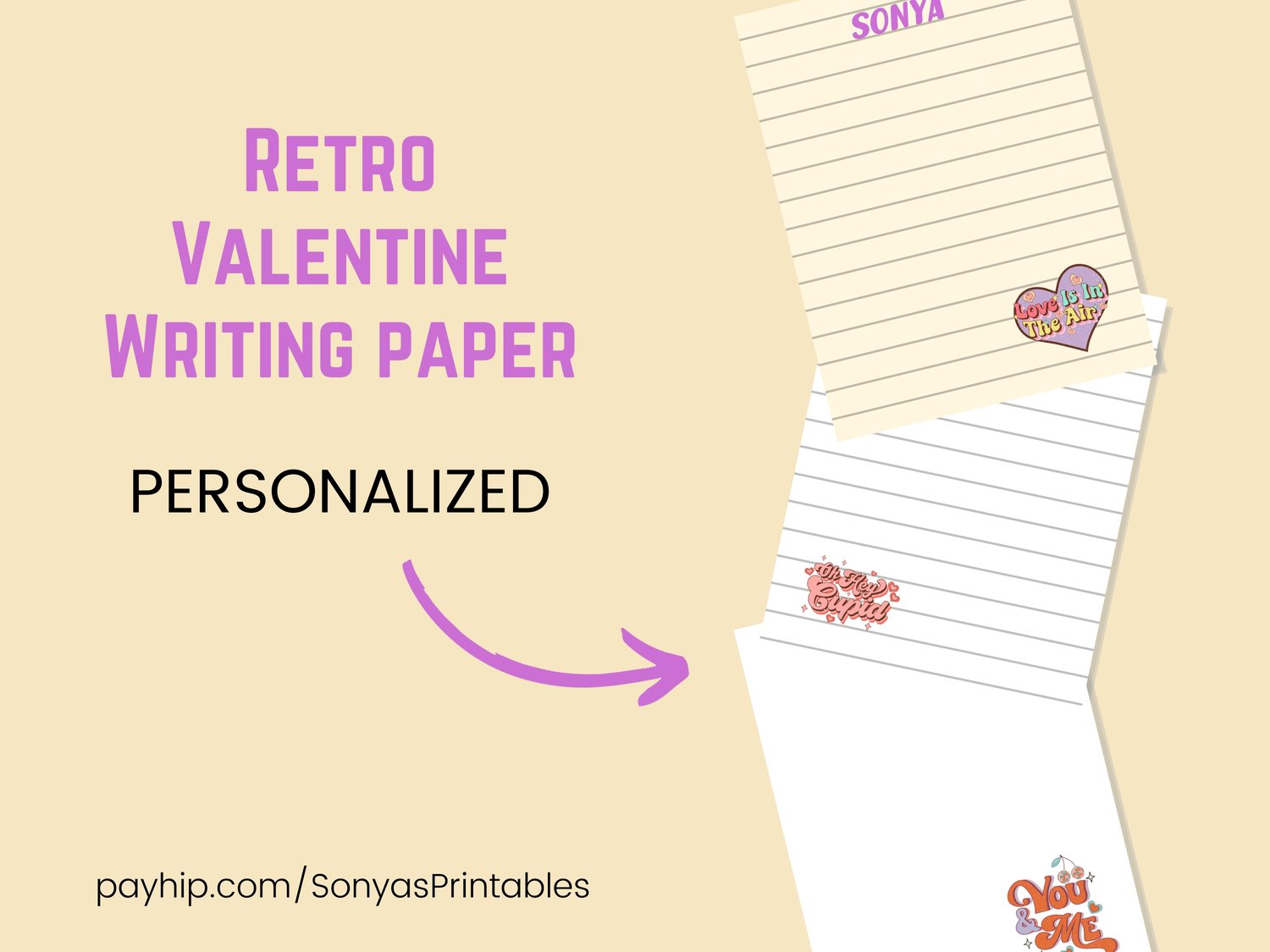Personalized Retro Valentine Stationery | Printable Boho Valentine Writing Paper | Custom Retro Valentine Note Paper | Boho Valentine Penpal Paper