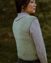 Choose a yarn that has some silk or linen content in it for a wonderful warm-weather statement piece. This delightful top is knit bottom up in the round, and then the leafy lace panels gently part to create a beautiful neckline after the front and back are split.
