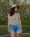 The Oolong 烏龍 Tank is a delicate and delicious lace top inspired by the tea plant Camellia sinesis from which black, white, green, oolong, and pu-erh teas are made.