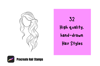 32 hair stamps for use with the popular digital drawing app Procreate. These stamps are designed to assist artists and designers in creating intricate and detailed hair designs with ease.