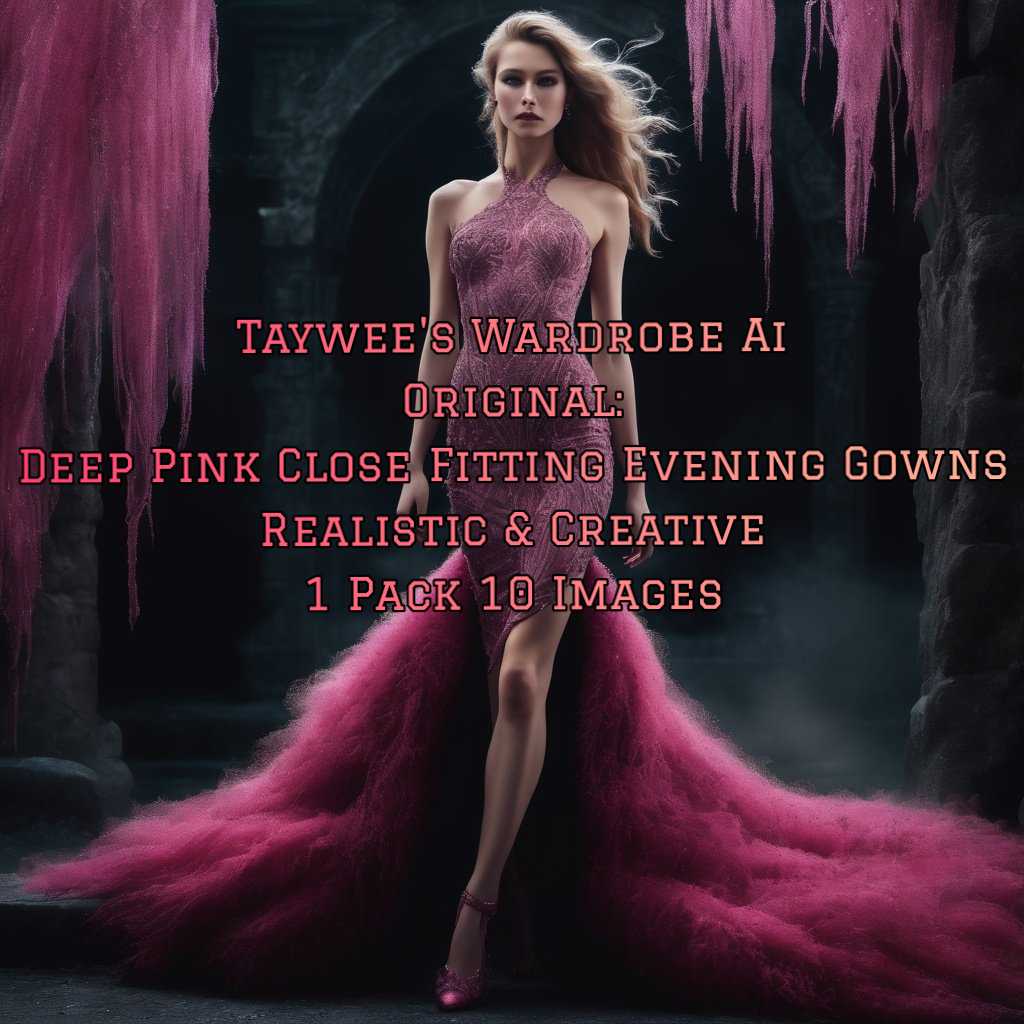 Taywee's Wardrobe Ai. Original: Deep Pink Close Fitting Evening Gowns Realistic & Creative. (Digital Files In Raster Format) Click To Buy. Price in USD.