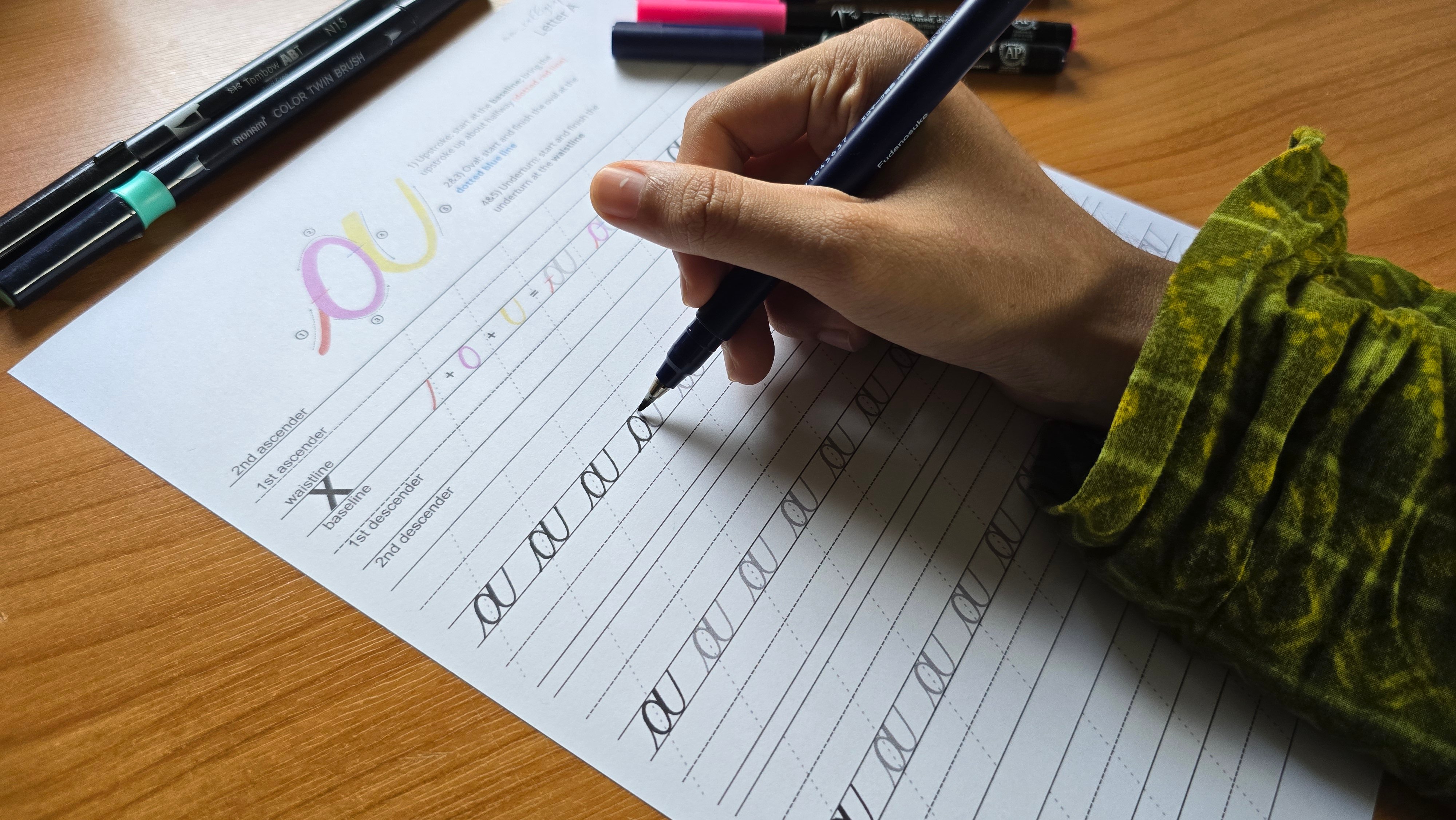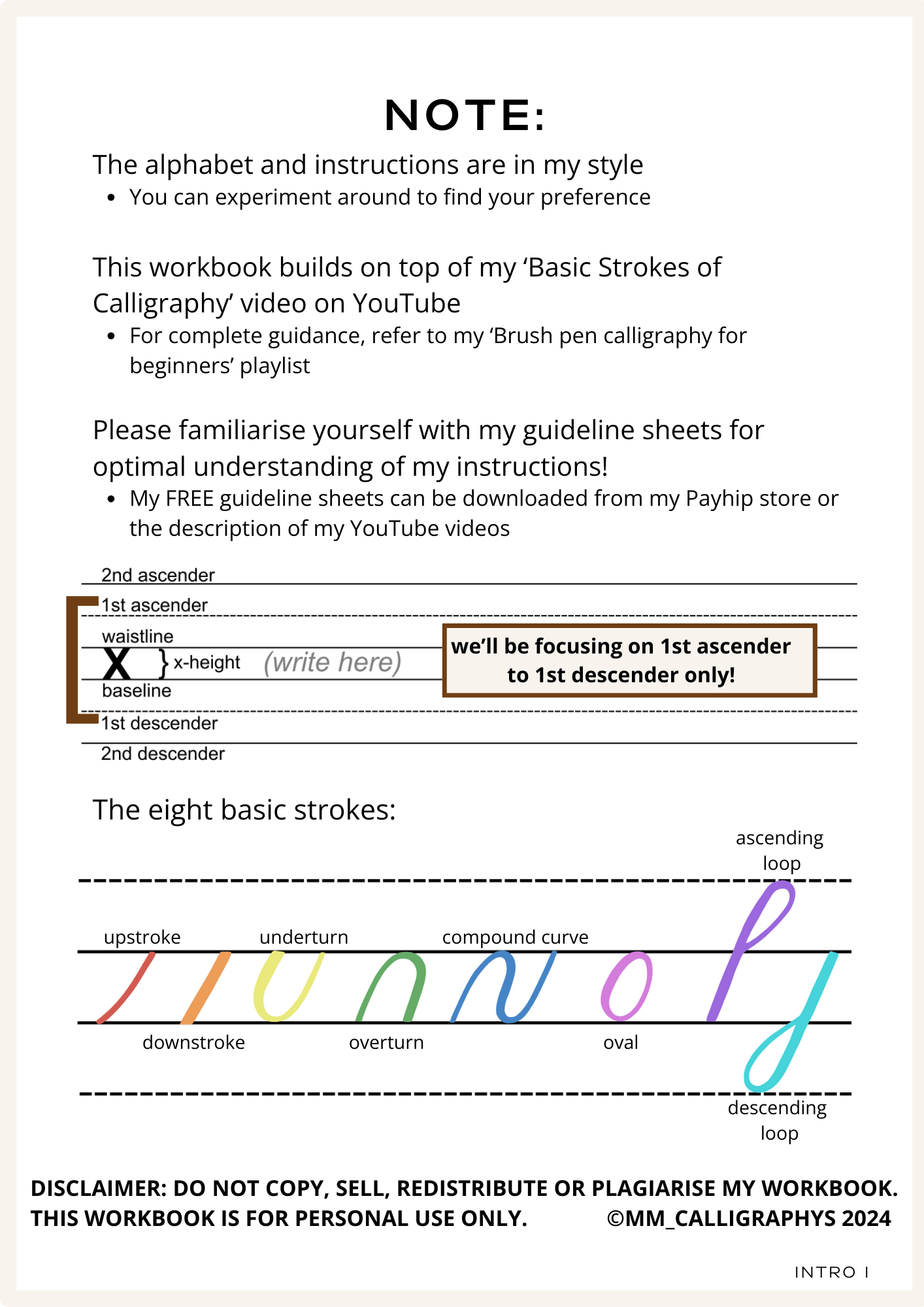 You’ll get two intro pages to get you started, and the rest of the workbook is packed with clear, detailed explanations and easy-to-follow diagrams — all created with complete beginners in mind. You get practice space that guides you step-by-step in perfecting every letter.