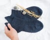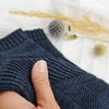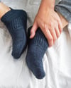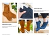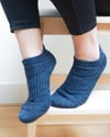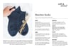 Ankle socks flow into a half-twisted rib cuff, finishing off with a delicate seed stitch tab, knit flat at the back of the leg. Mid-calf socks first continue with a ribbed section around the ankle for a snug fit (optional), then either a plain stockinette or seed stitch leg, finishing with a half-twisted rib cuff and seed stitch tab.
