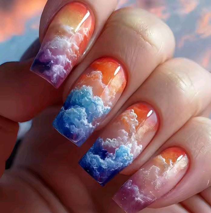 24 pieces of Long cloud nails for new spring and summer. These wearable false nails offer a simple, stylish, and modern look, perfect for everyday wear or special occasions.