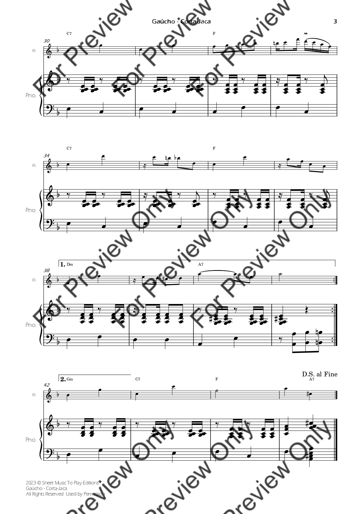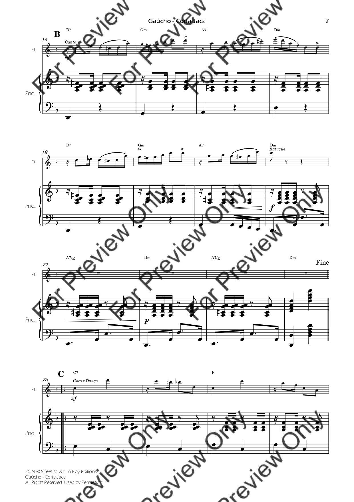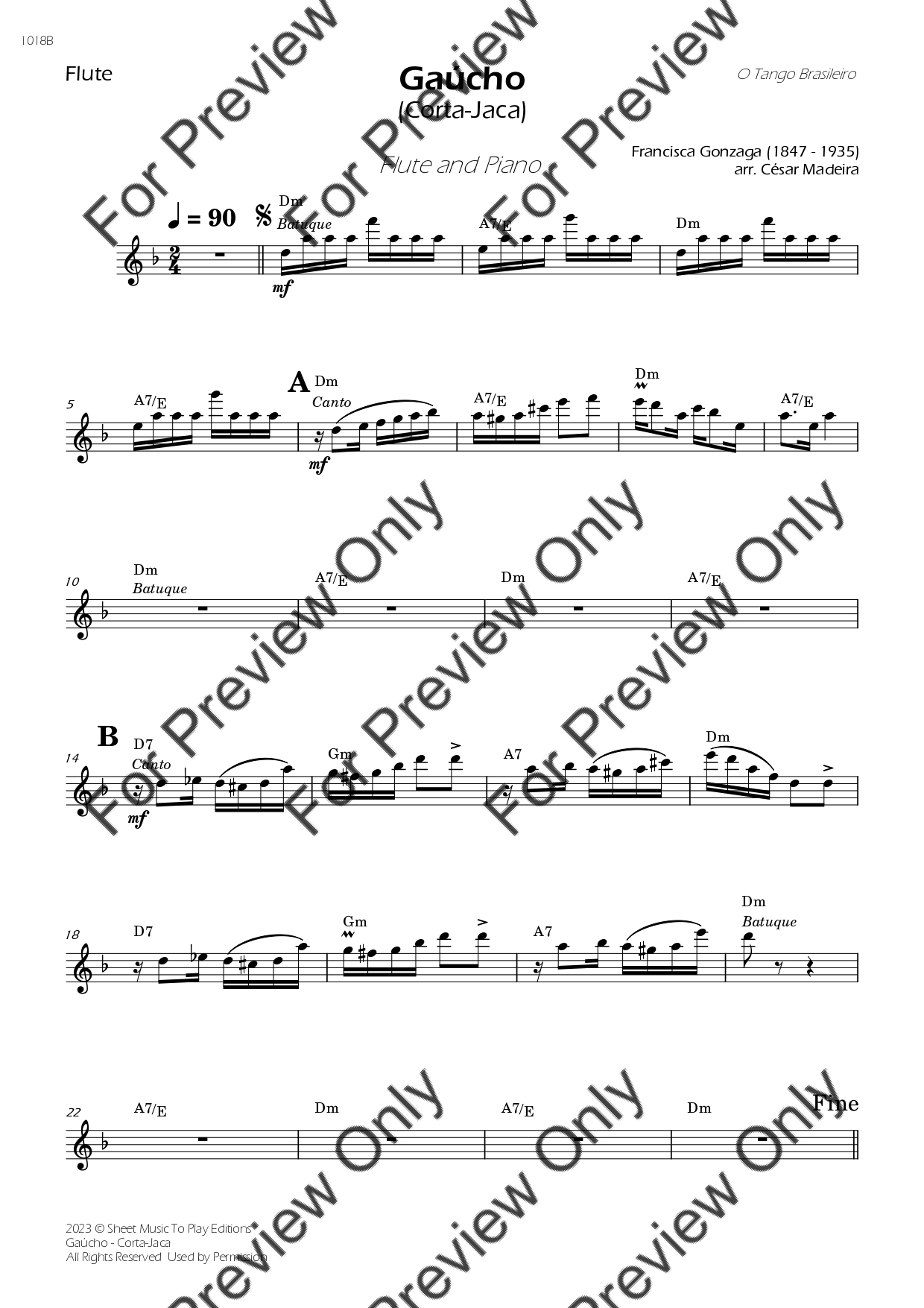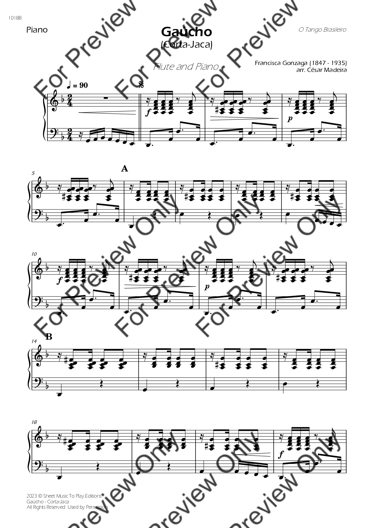 Gaúcho (Corta-Jaca) by Chiquinha Gonzaga. Arrangement for Flute and Piano. With Full Score and Individual Parts. Have fun!