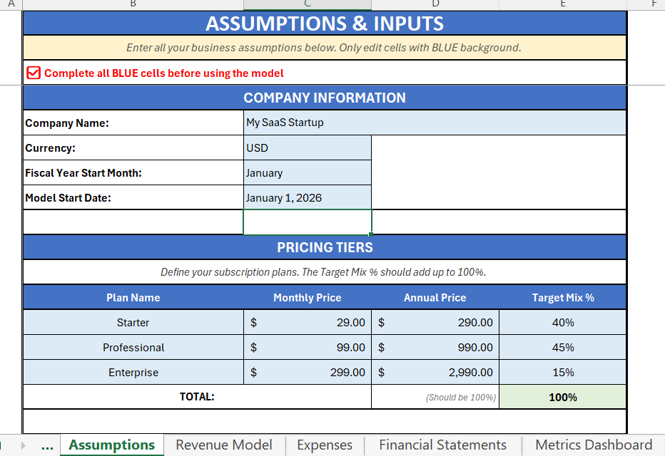 1. SaaS-Financial-Model.xlsx (the template)