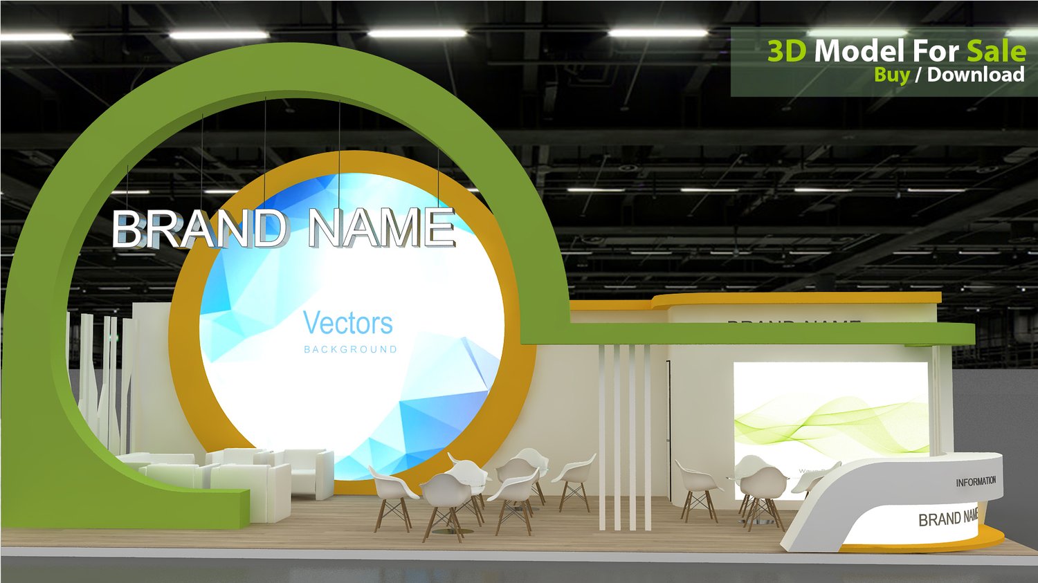 include design all necessary area in Exhibition and Booth Such as Vip and Storage and Counters and also Stand for productsFormat: max (all version from 2016) / FBX /OBJ/