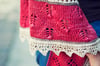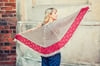 Inspired by the Alpine countryside and worked up in a Swiss silk blend, this shawl is an extra-special treat as its name implies. Have your way with color combinations in this half-macaroon shaped beauty that features a leafy pattern stitch with cherry-like bobbles and a zigzag lace border.