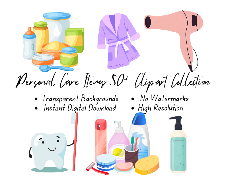 Personal Care Items 50+ Clipart Collection | High-Resolution Digital Printables | Instant Download | No Watermark