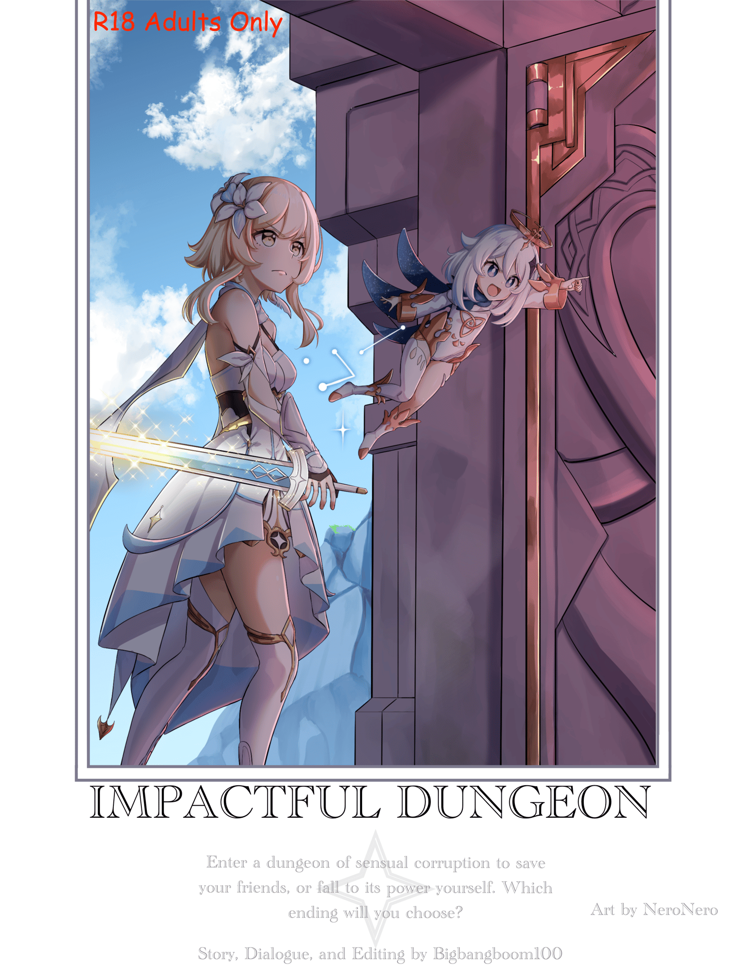 A portal to a new dungeon has appeared, and from within a perverse corruption seeps from its gate and all of the monsters within. Your friends fall one by one to its sensual subjugation. You are sent to rescue them and defeat this dungeon once and for all. Will you succeed in your task of saving your friends with some sexual fun along the way, or will you submit to the dungeon to be plundered and pleasured for your magic for all time? The choice of ending is up to you.