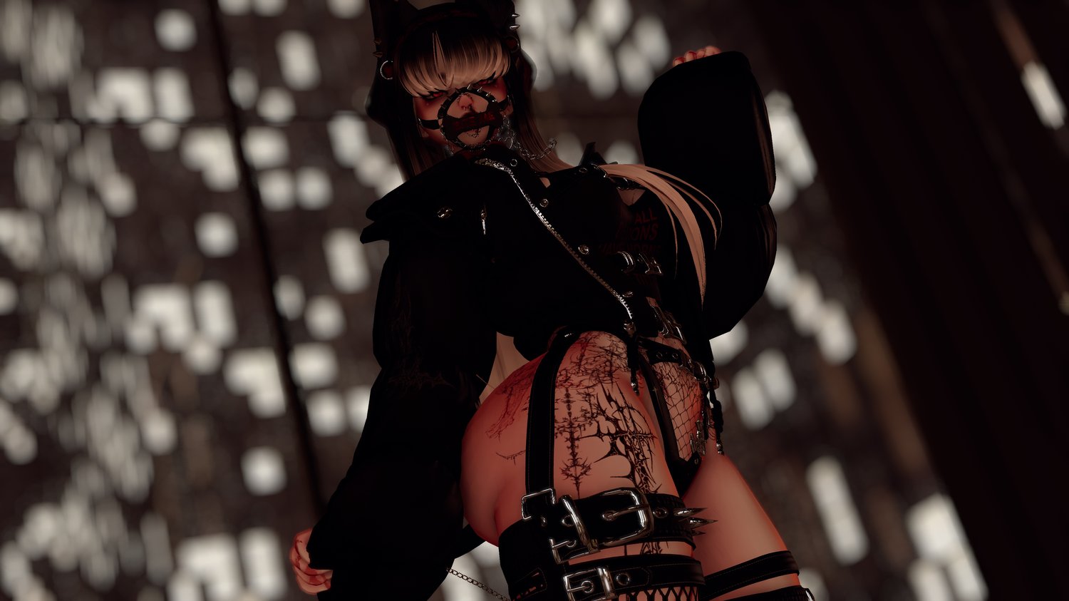♡Tank,Skirt, Fishnet Bodysuit, Arm Belt,Arm Chain,Tee, Puffer Coat: Suki