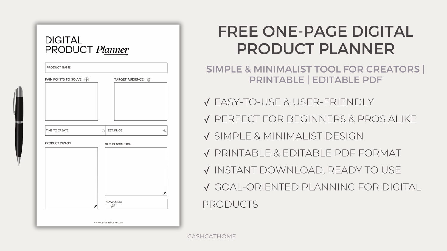 Free One-Page Digital Product Planner | Simple & Minimalist Tool | Printable | Editable PDF