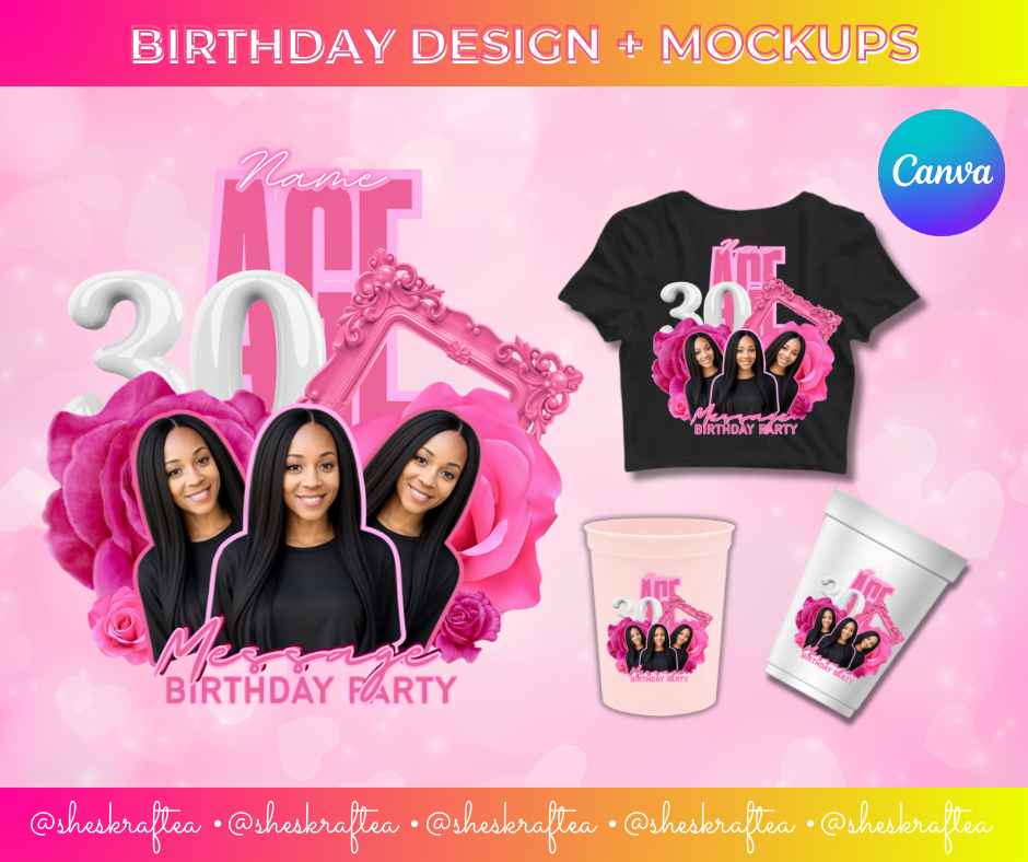 Edit to include your own photos, age & colors and promote with the included mockups.