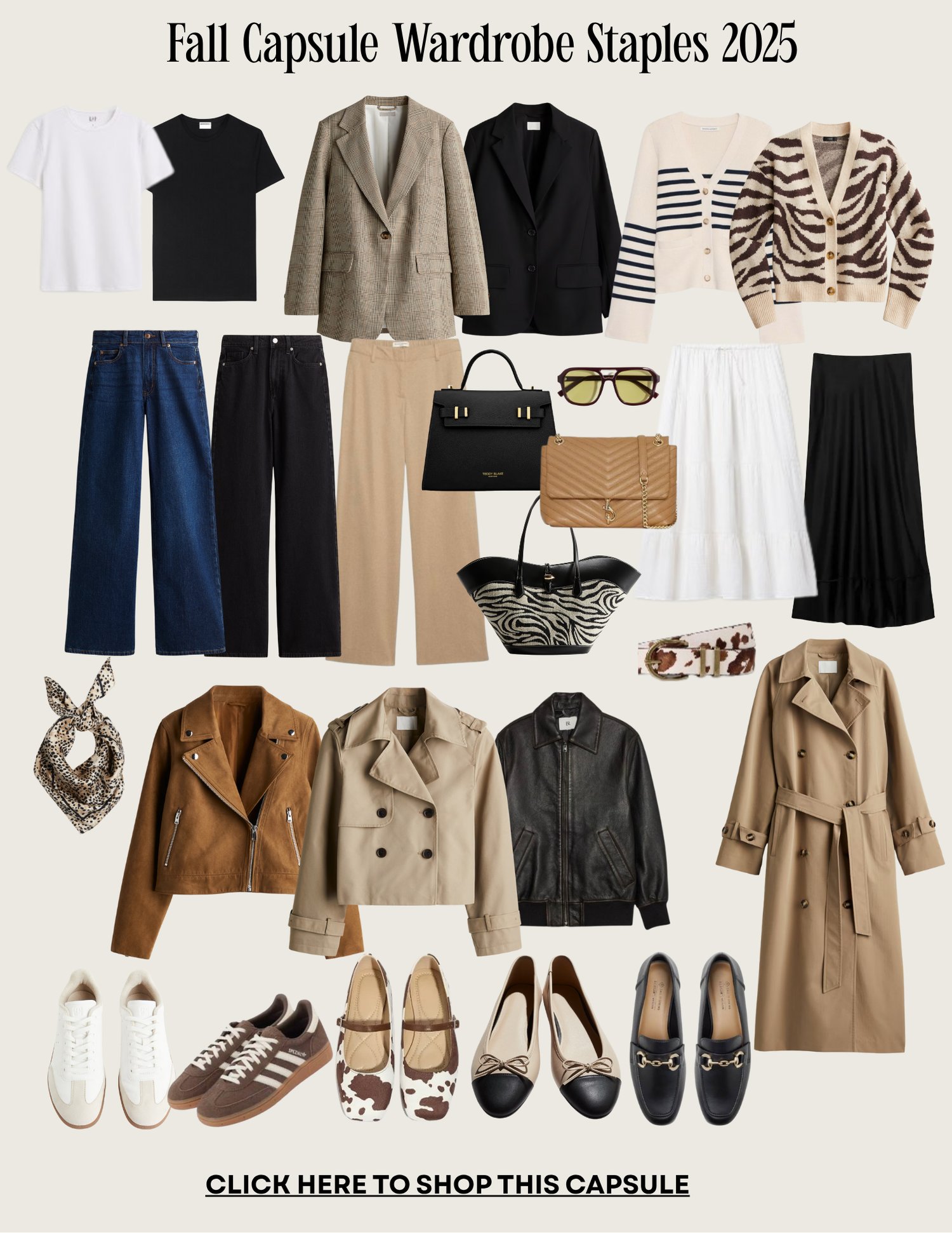 Feeling like you have a closet full of clothes but nothing to wear? The solution isn't more clothes—it's a capsule wardrobe. A capsule wardrobe ensures everything works together, allowing you to create stylish, effortless outfits for any occasion. Here’s a simple 18-piece Fall Capsule that offers over 360 outfit combinations (not counting the bags). The capsule contains shopping links but I am sure that most of these pieces you already have in your closet. Hope this guide helps you to look and feel stylish this Fall!