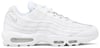 The Nike Air Max 95 'White' is a popular colorway of the iconic Air Max 95, first released in 1995. Known for its distinctive layered design, it features a mix of white leather, mesh, and synthetic materials on the upper. The shoe is equipped with the signature visible Air cushioning units in the heel and forefoot for enhanced comfort. Its sleek and bold look, combined with the comfortable and supportive fit, has made it a staple in both performance and lifestyle sneaker collections.