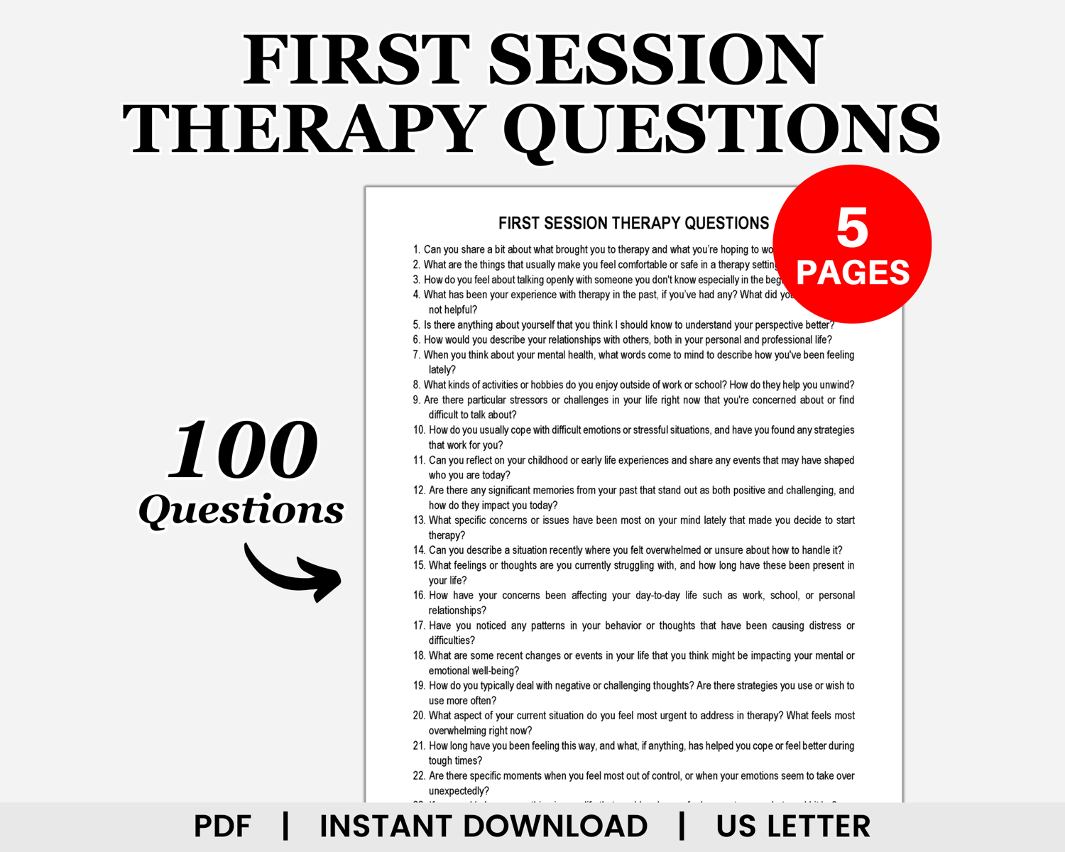 Designed to spark insightful dialogues and facilitate meaningful discussions. These first session therapy questions are created to ignite introspection, open up communication channels, and provide valuable insights for both therapists and clients alike.