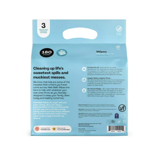 - HELLO BELLO BABY WIPES. Made to clean up life's most impressive messes. Our wipes are here to help with whatever gets thrown at you (literally) - designed to keep your family clean today and healthy tomorrow.