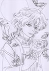 This package includes the coloring pages of Usagi, Mamoru, Chibiusa and Helios. The them for all of them are roses and feathers, while the men are shown in front of the moon and the main trio are accompanied by the cats.
