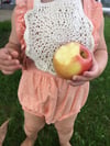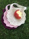 Requires 4 weight (worsted) cotton yarn and snaps or a button.