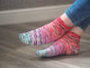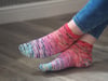 The “portmanteau” Scrapix (or Scrappy Helix Socks) are worked using scraps of yarn, faded together using helical knitting to prevent any seam or jog. They are worked toe-up, allowing complete versatility on the yarn you use. Just keep going until you use up all your yarn or until the desired length. There are 3 different toe options, so you can make the perfect sock for you - includes guidance on which to choose.