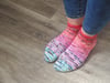 The sample pair shown used 5 different colours of approximately 10g - 42m (46yds) each - 50g total for both socks.