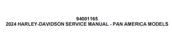 2024 Harley Davidson Pan America Models Service Manual Part No. 94001165