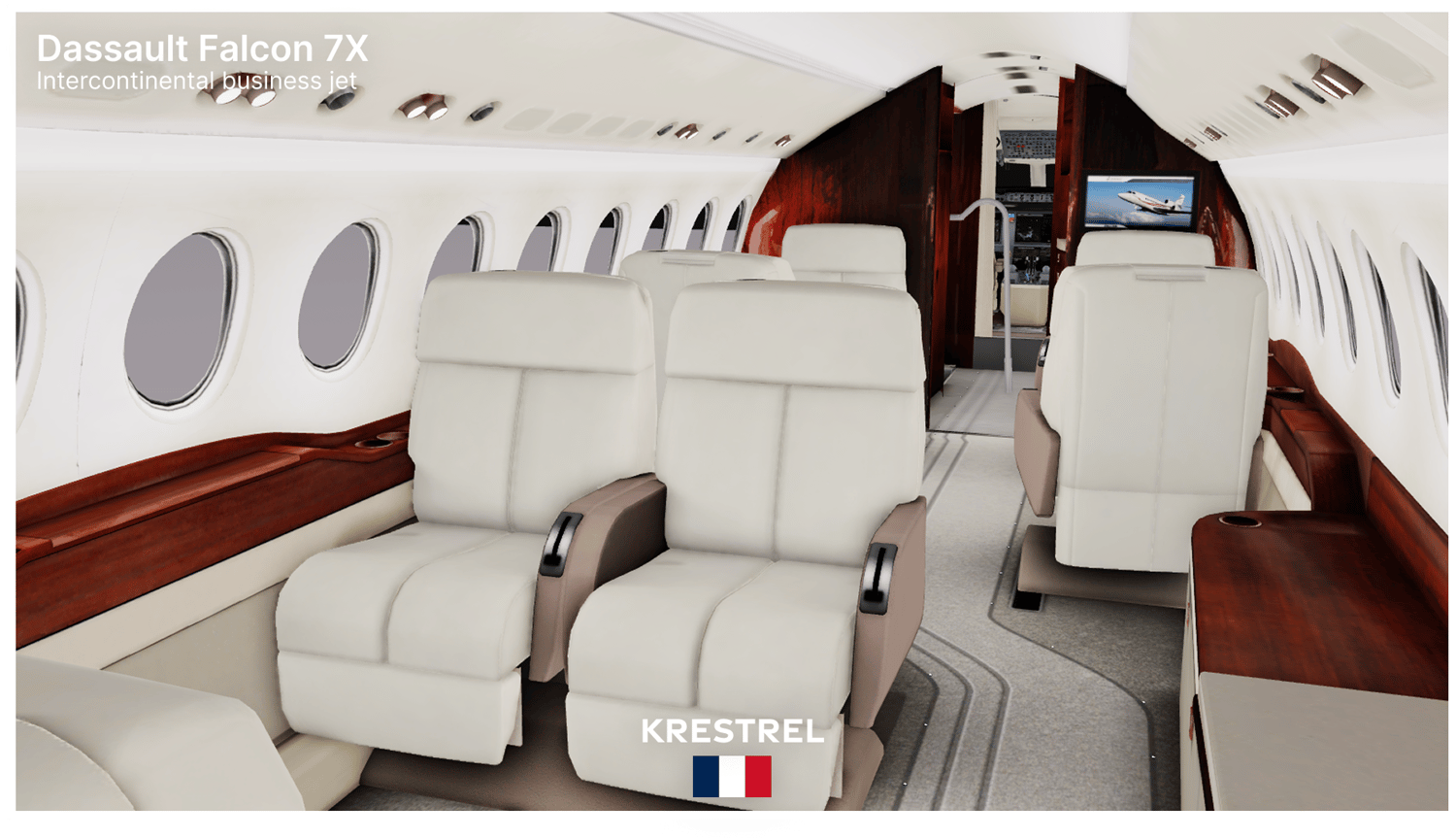 Get your players flight-ready with the Falcon 7X. This luxurious, long-range business jet is designed for comfort and efficiency, making it ideal for swift passenger transport and handling intercontinental routes in your game.