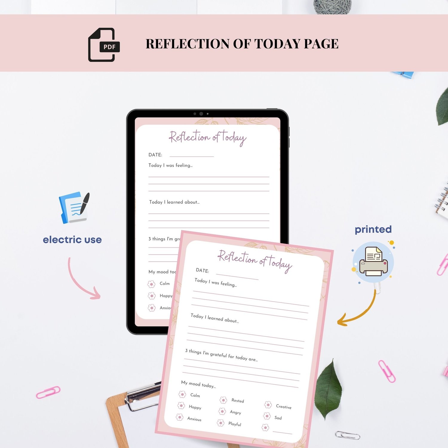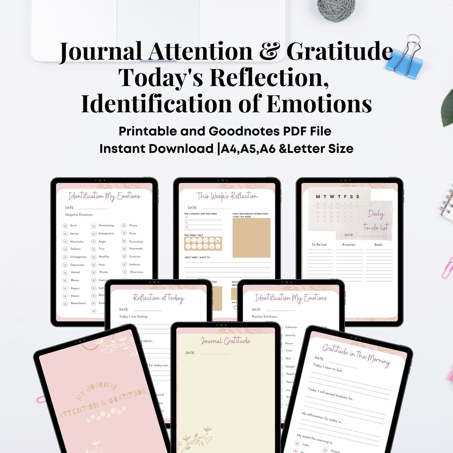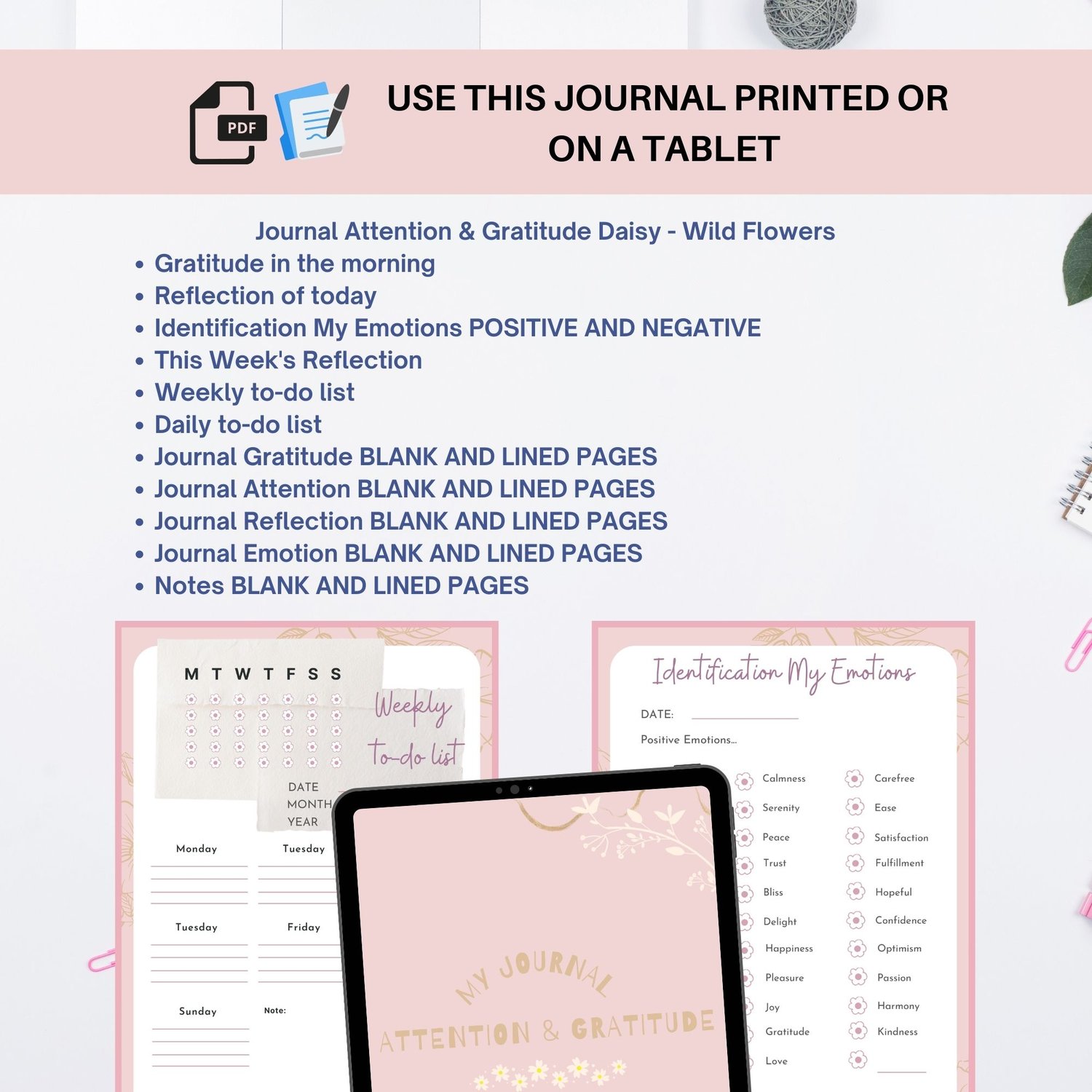 This is Journal Attention & Gratitude Today's Reflection, Identification of Emotions, Daily To-do List, Weekly To-do List Daisy, and Wild Flower Instant Download