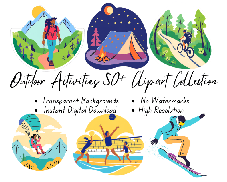 Outdoor Activities 50+ Clipart Collection | High-Resolution Digital Printables | Instant Download | No Watermark