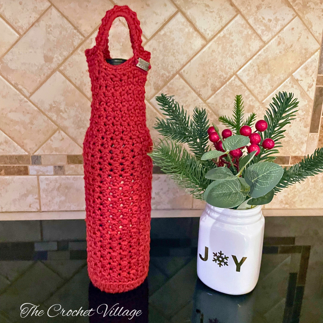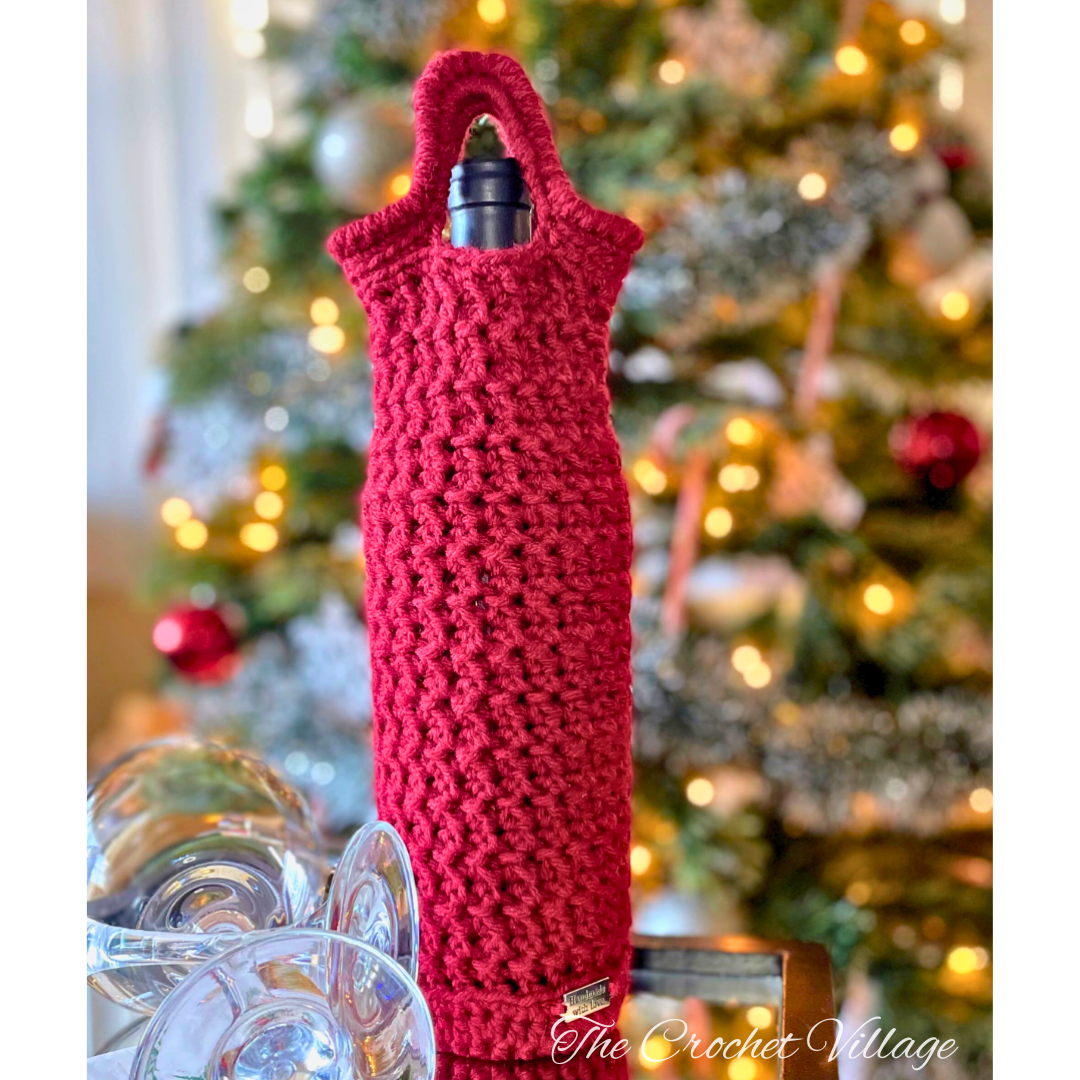 Add a touch of class to your holiday celebrations with our elegant wine bottle tote crochet pattern. It's easy to create and guaranteed to spark a table conversation. Perfect as a Christmas or any occasion gift, the Merry Berry wine bottle case is worked from the bottom up using basic stitches and your favorite worsted weight yarn. It's simple enough for beginners, too! Cheers to festive crafting!Â