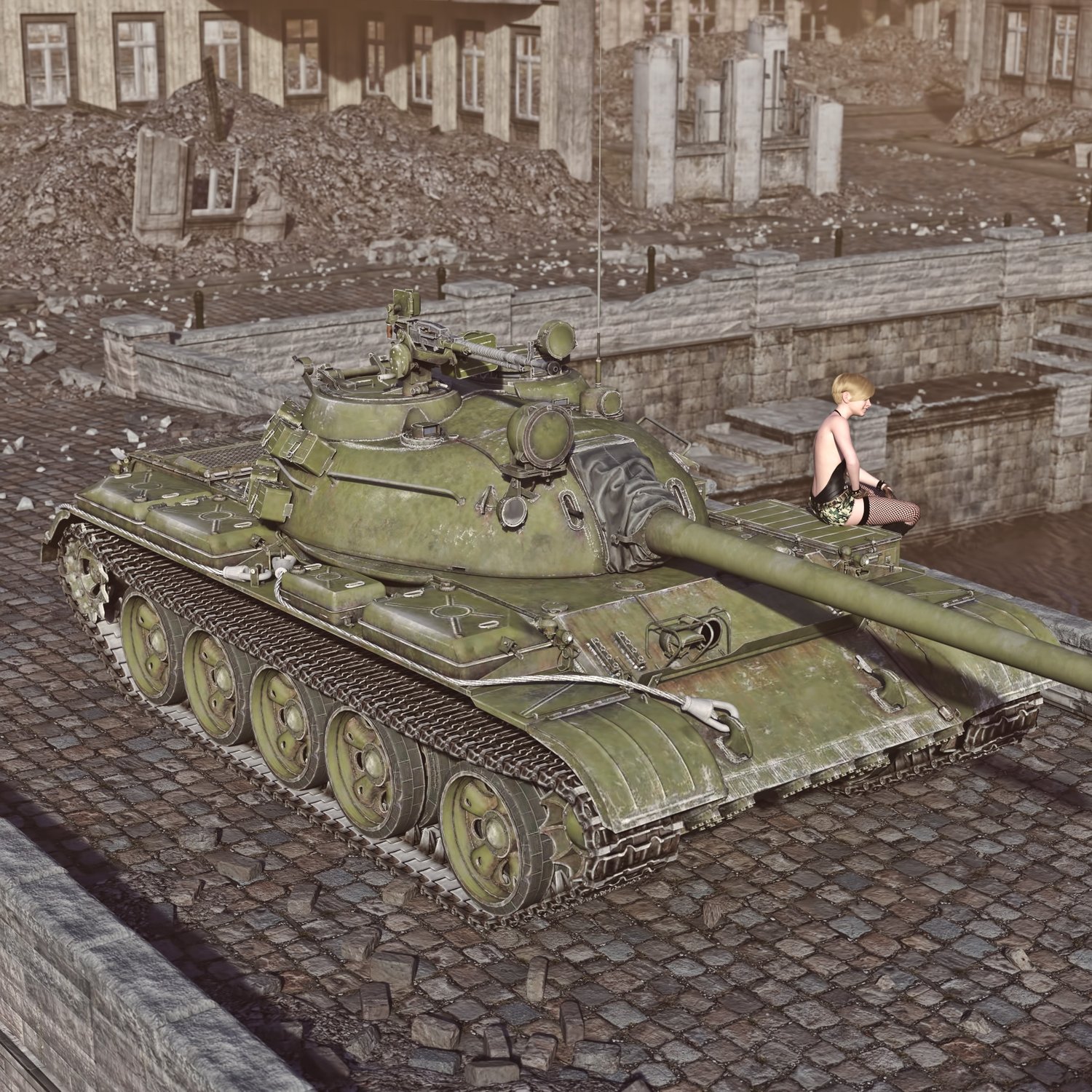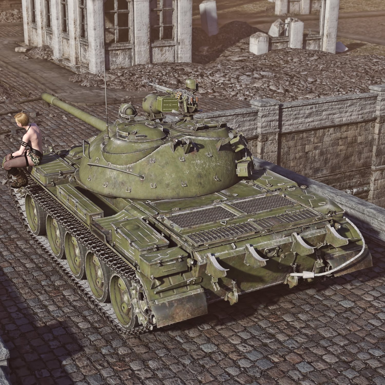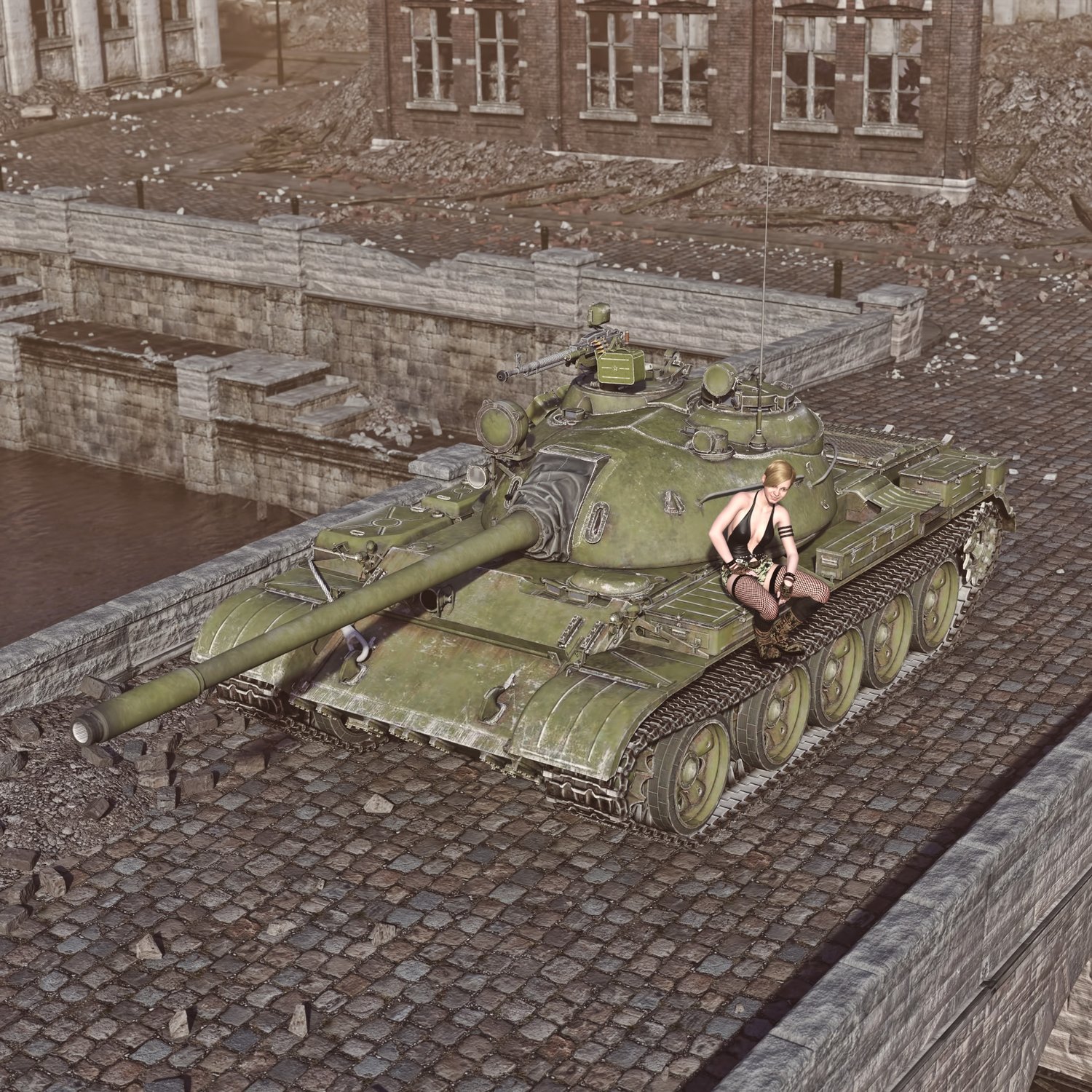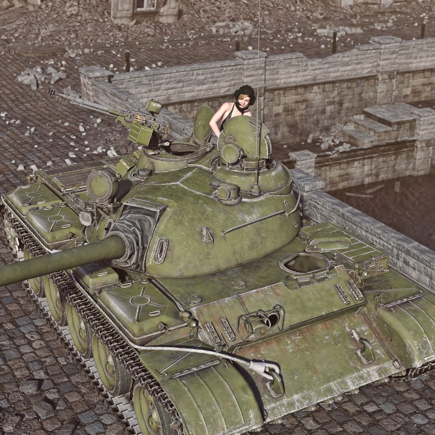 One of the first successors of T34 tank, in the post WW2 times. Larger gun, high caliber machinegun and everything the tank needs. Turret and gun rotate and pivot. Machine gun is also movable. Good as a main tank or as a fire support for infantry. The prop is converted and rigged for DAZ.