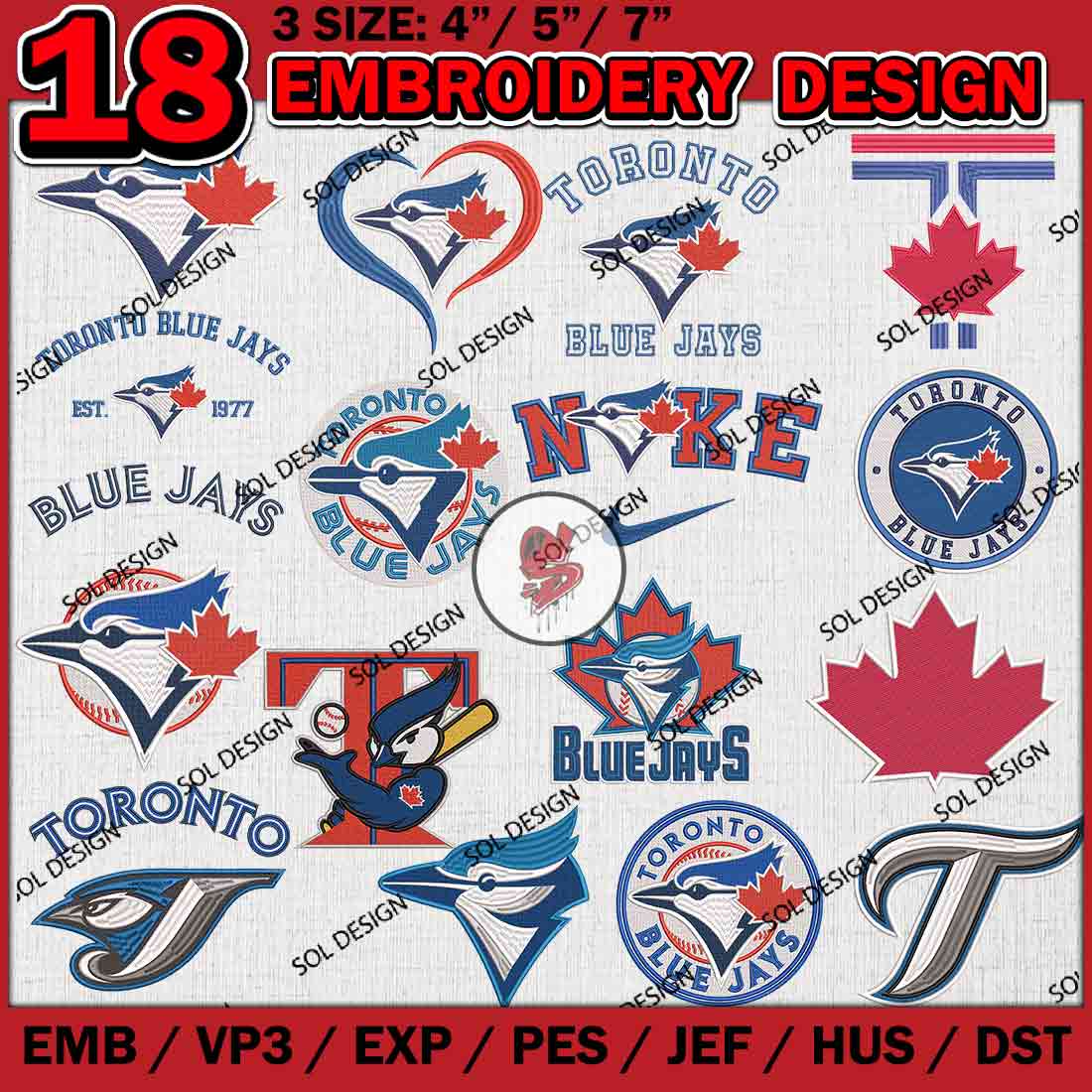 18 Toronto Blue Jays MLB Team Bundle Embroidery Designs, MLB Toronto Blue Jays Embroidery Designs, MLB Jays Machine embroidery Designs Bundle, Baseball Team Bundle, Digital Download