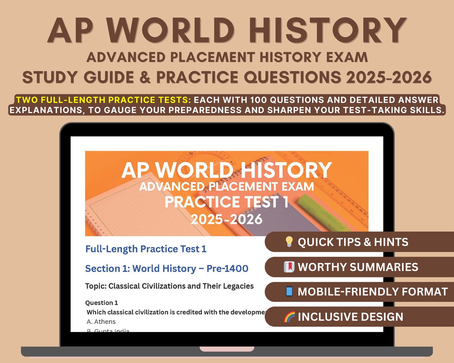 Get ready to ace the AP World History: Modern Exam with this comprehensive and easy-to-follow study guide for 2025-2026. Whether you're a student, homeschooler, or teacher, this guide is your complete companion for mastering world history and scoring high on exam day.