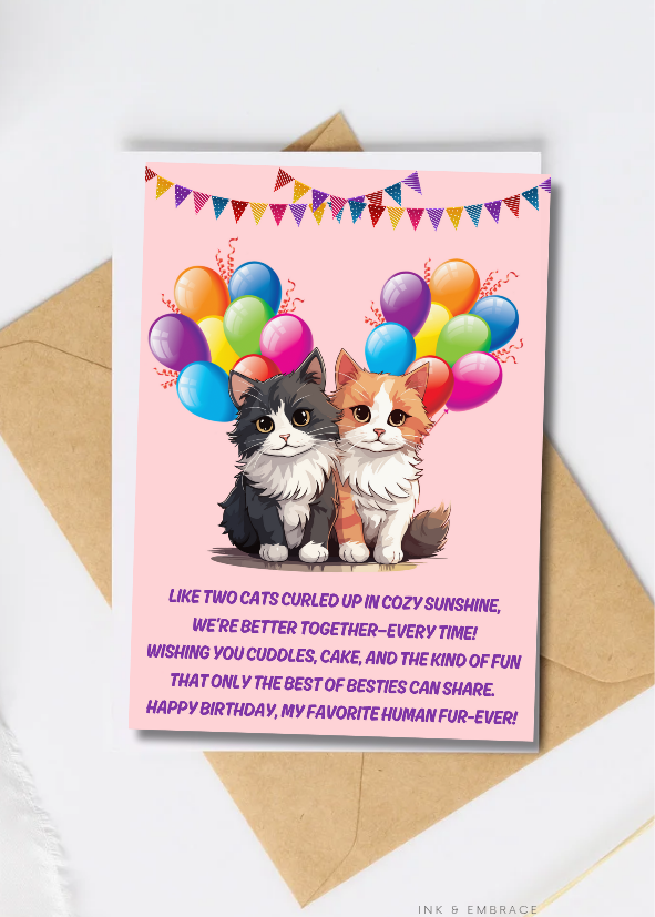 Celebrate friendship and fun with this adorable Best Friends Cat Birthday Card! Featuring two sweet, playful cats, this printable birthday card is perfect for besties, sisters, or any girl who loves cute animals. With a charming design and heartwarming vibe, it’s ideal for girls of all ages. Instant download and print – no personalization needed. Great for last-minute gifting!
